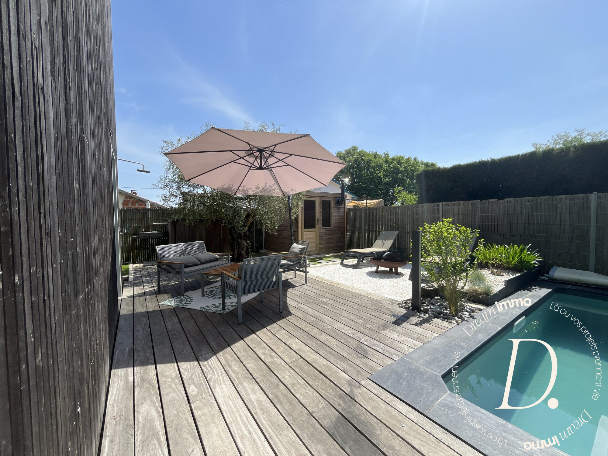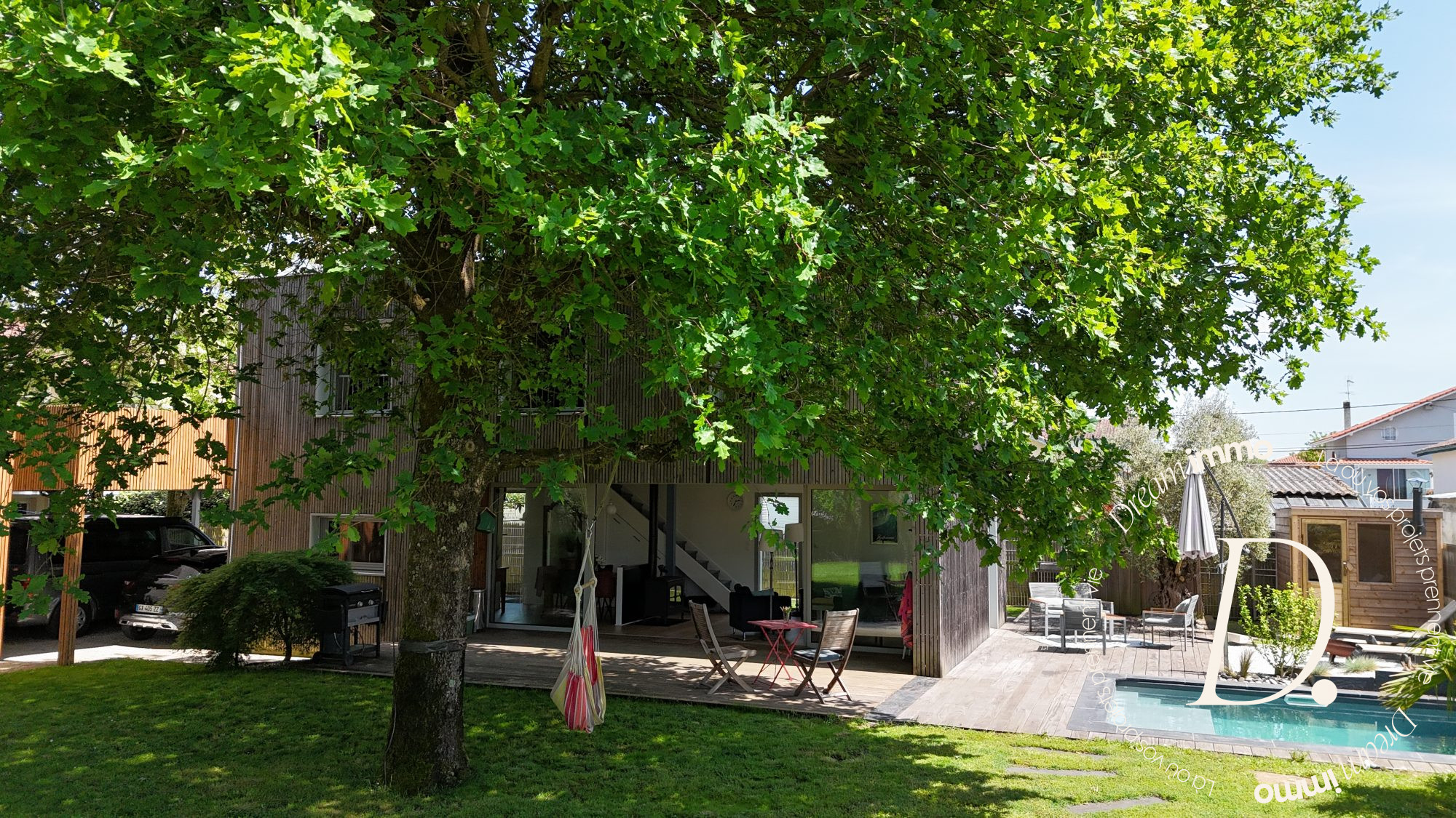 ...Au rez de jardin, vous profiterez d'une cuisine d'été donnant sur une terrasse, d'un bureau, d'un...