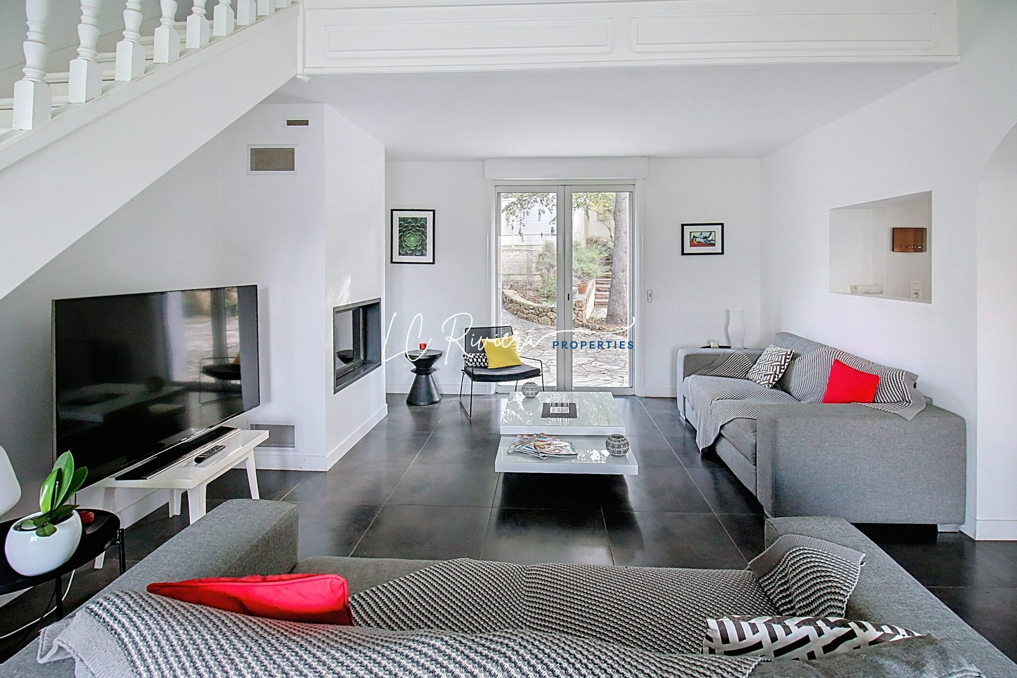 ...De plain-pied, un vaste séjour traversant de 40 m² s'ouvre sur deux terrasses et une mezzanine...