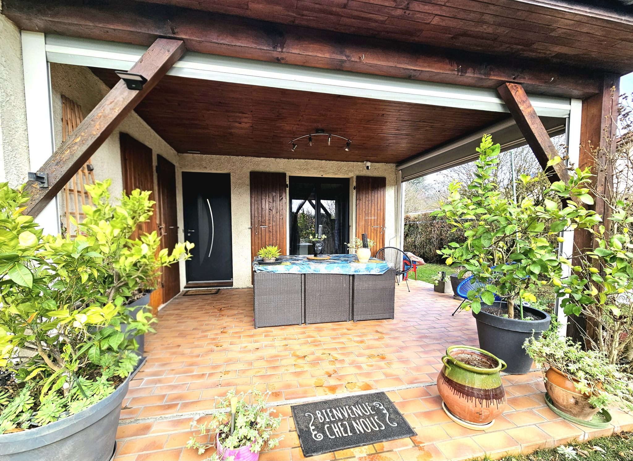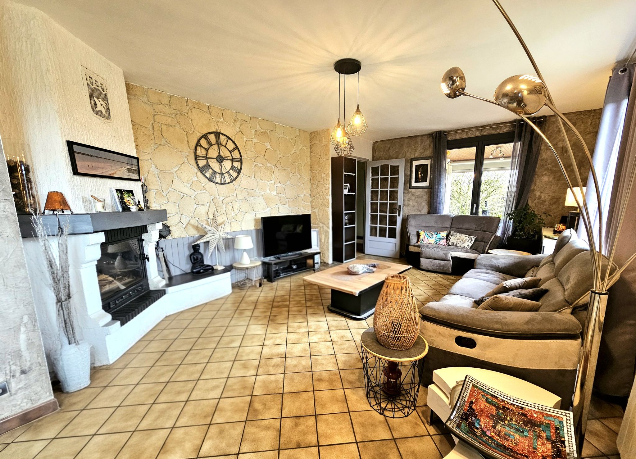 ...Séjour chaleureux avec cheminée / insert bois, cuisine donnant sur une belle terrasse abritée...