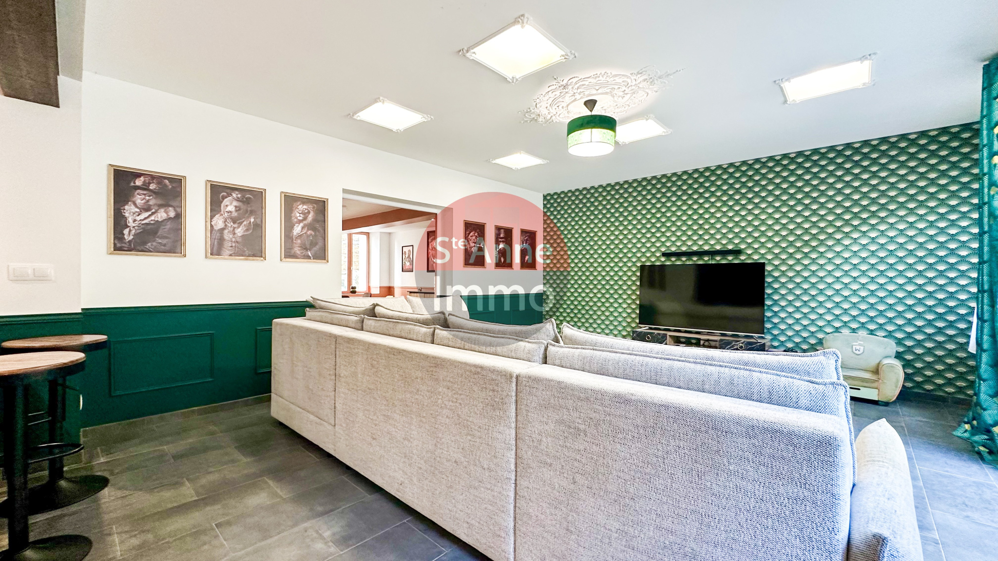 ...Se bien comprend : Entrée, séjour/salon, deuxième salons, cuisine aménagée et équipée, laverie,...