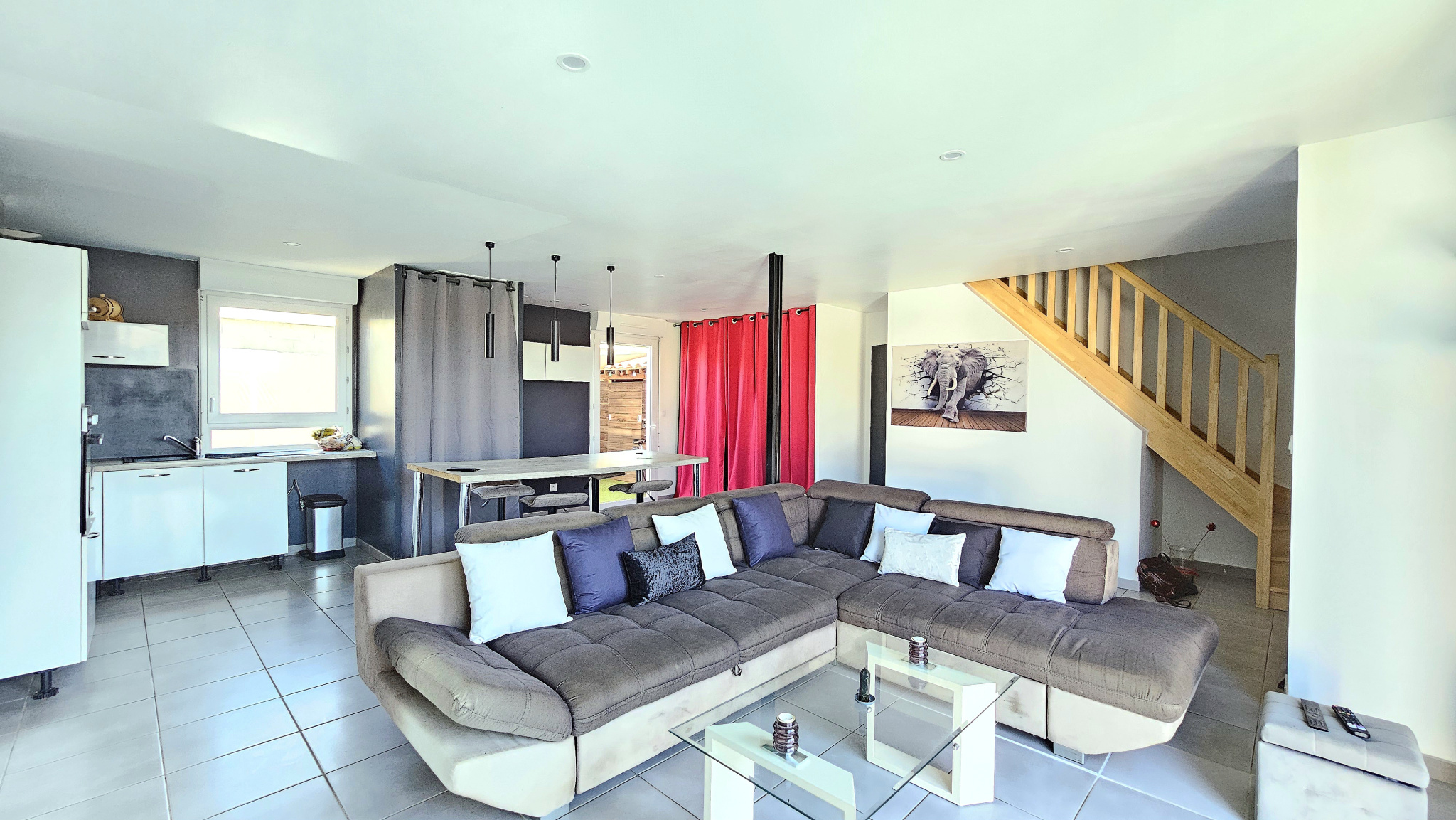 ...Cette maison récente se compose d'une grande pièce de vie lumineuse de 45 m2 avec cuisine ouverte...