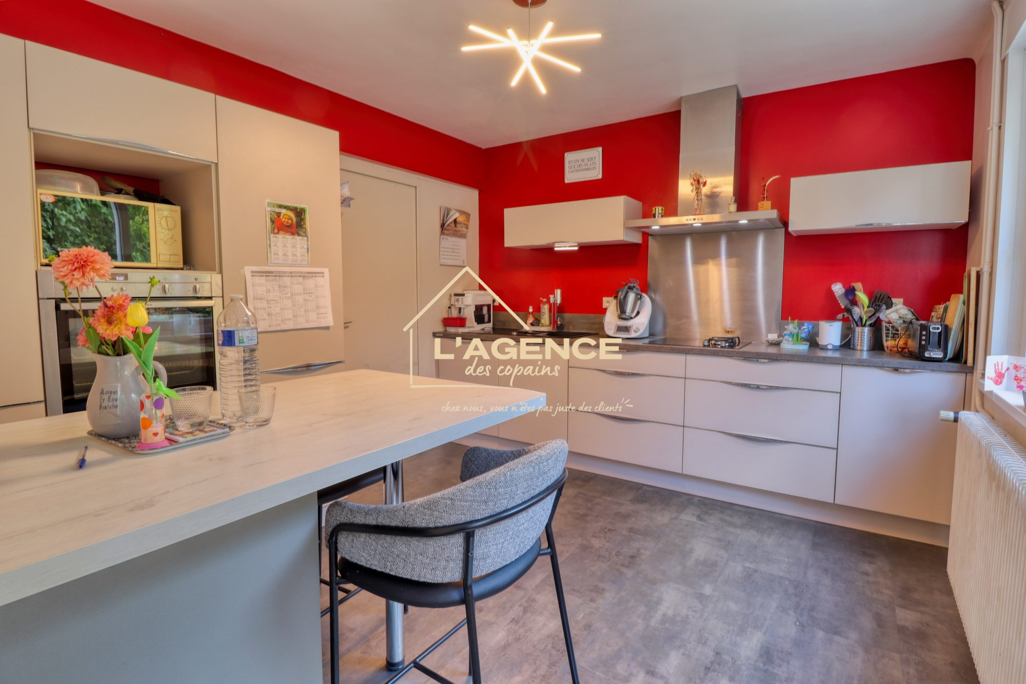 ...Au rez-de-chaussée :Un palierUne pièce de vie conviviale avec espace salon / salle à mangerUne...