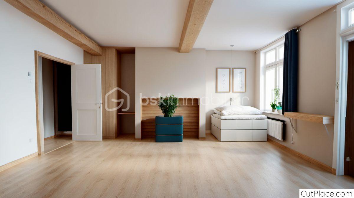...À l'étage, un vaste plateau brut de 45 m² offre de multiples possibilités d'aménagement :...