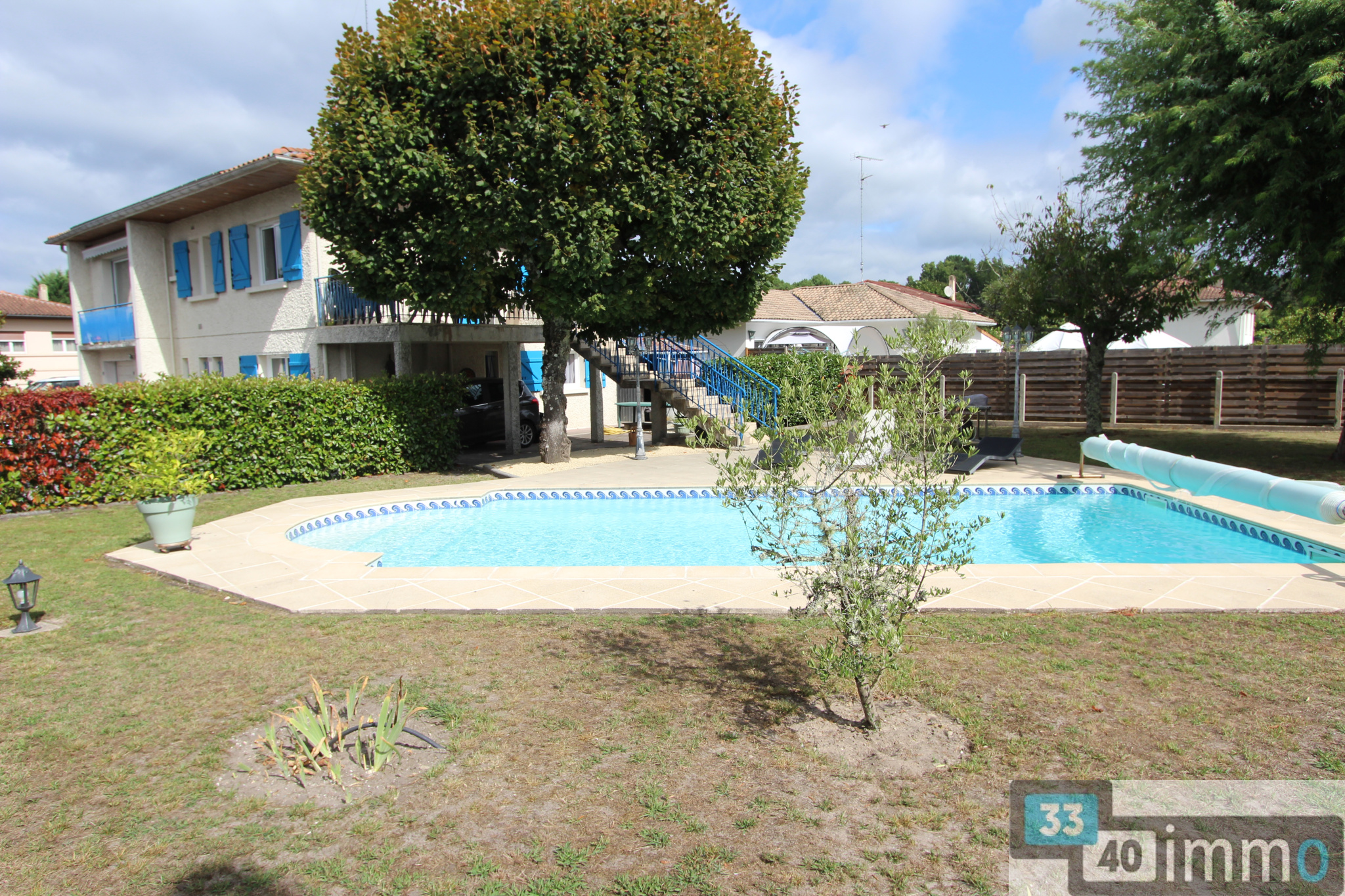 ...A l'extérieur une terrasse bois de 100 m2 et une piscine, le tout sur un terrain de 796 m2...