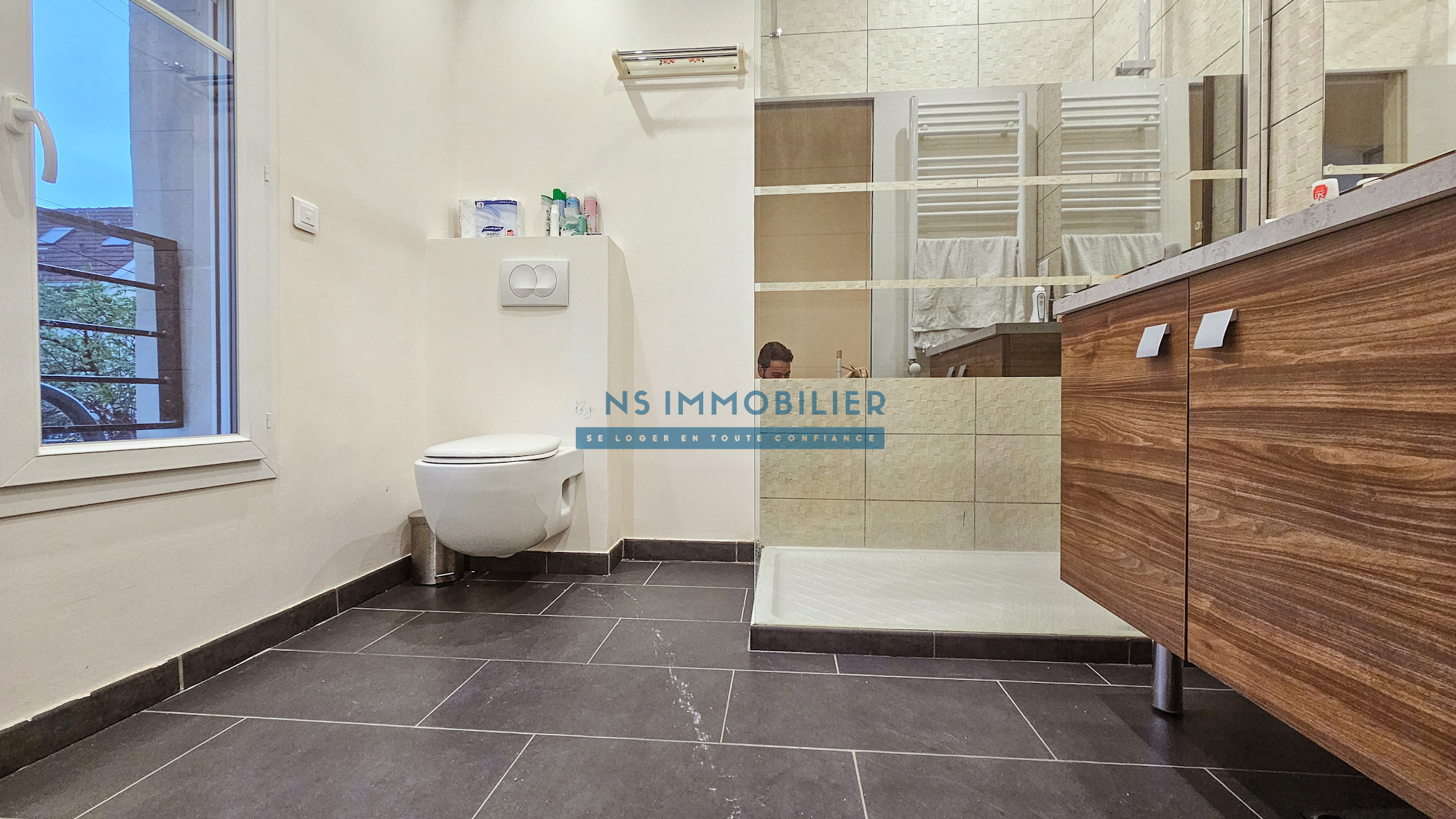 ...A l'étage, on découvre un bureau, 3 chambres avec placards dont une suite avec salle de bains et...