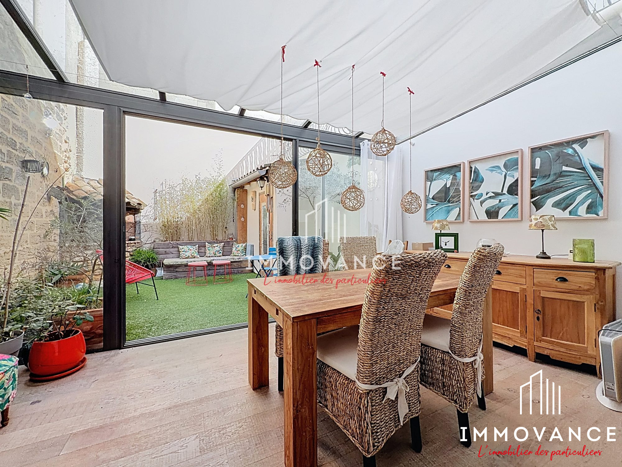 ...Elle bénéficie d'un jardin arboré de 441 m² piscinable exposé sud-ouestElle se compose, au...
