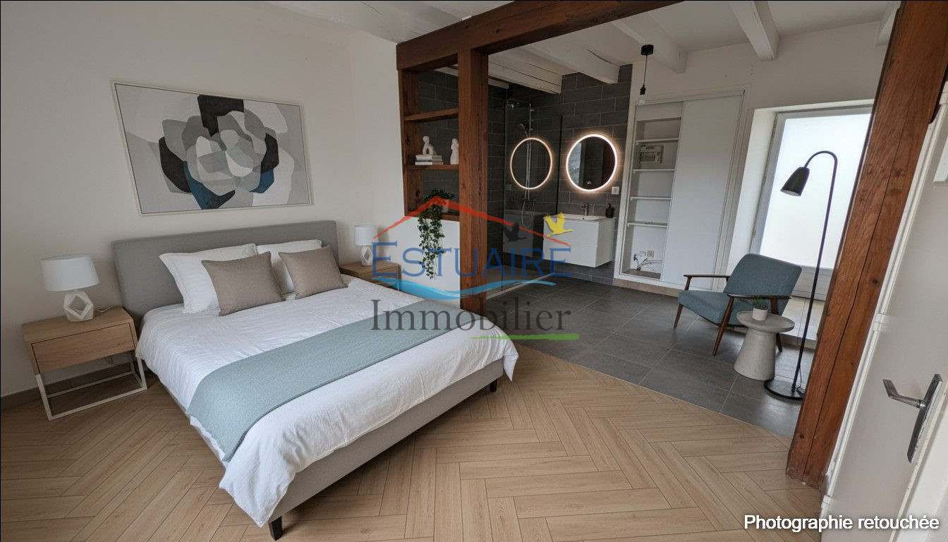 ...A l'étage, un palier dessert 2 grandes chambres dont une avec un espace placard pouvant servir de...