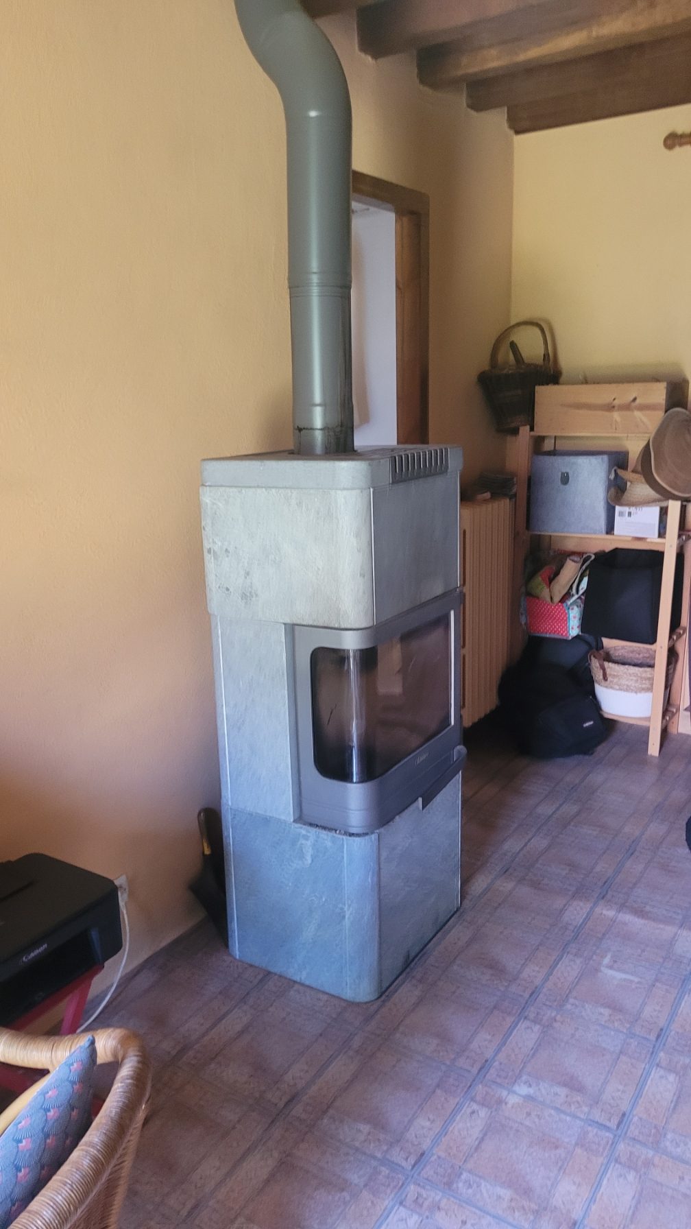 ...rez de chaussée une belle entrée de 20 m² avec départ d'escalier pour l'étage et un poêle à bois,...
