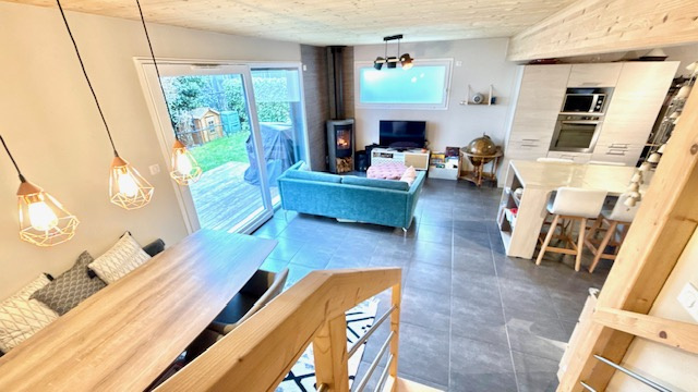 ...Au rez-de-chaussée, l'entrée s'ouvre sur une spacieuse pièce de vie de 35m², avec cuisine ouverte...