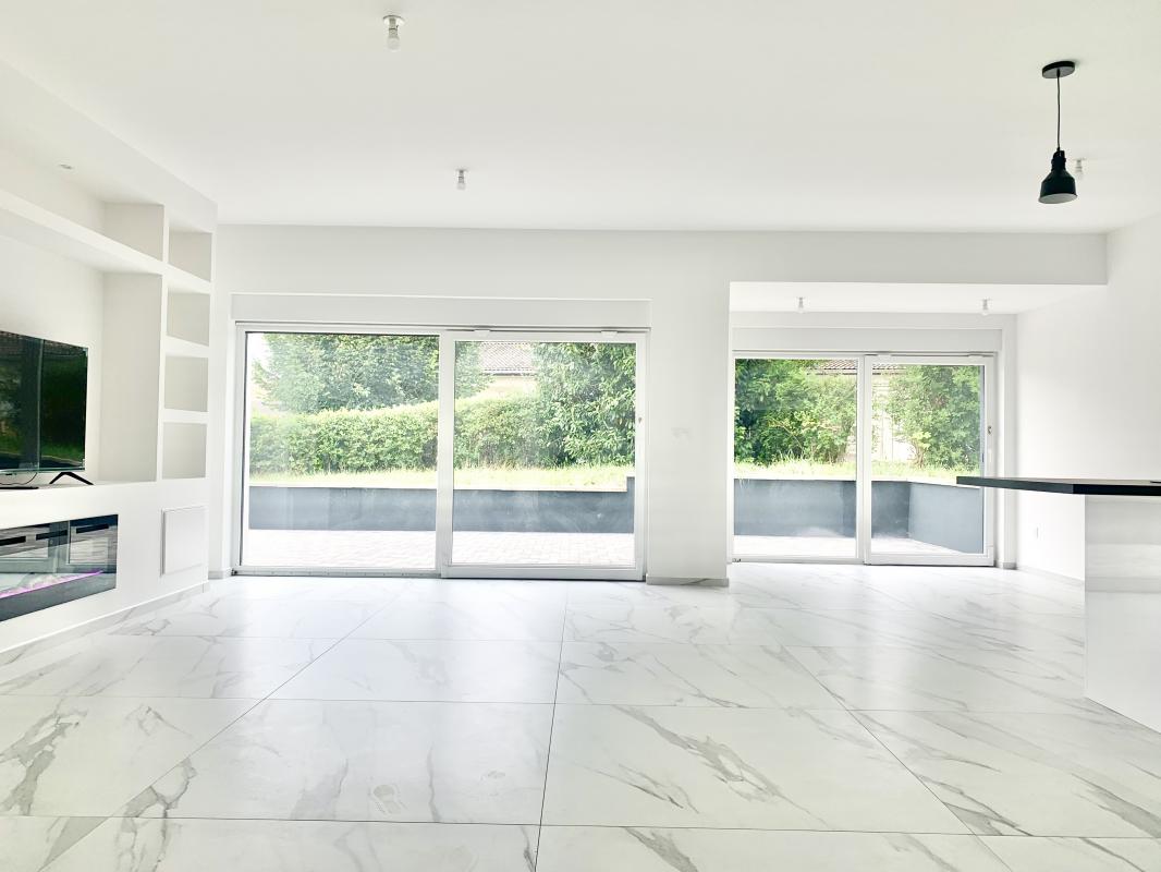 ...Au rez-de-chaussée, vous profiterez d'un hall d'entrée de 9 m² ouvrant sur une cuisine équipée...