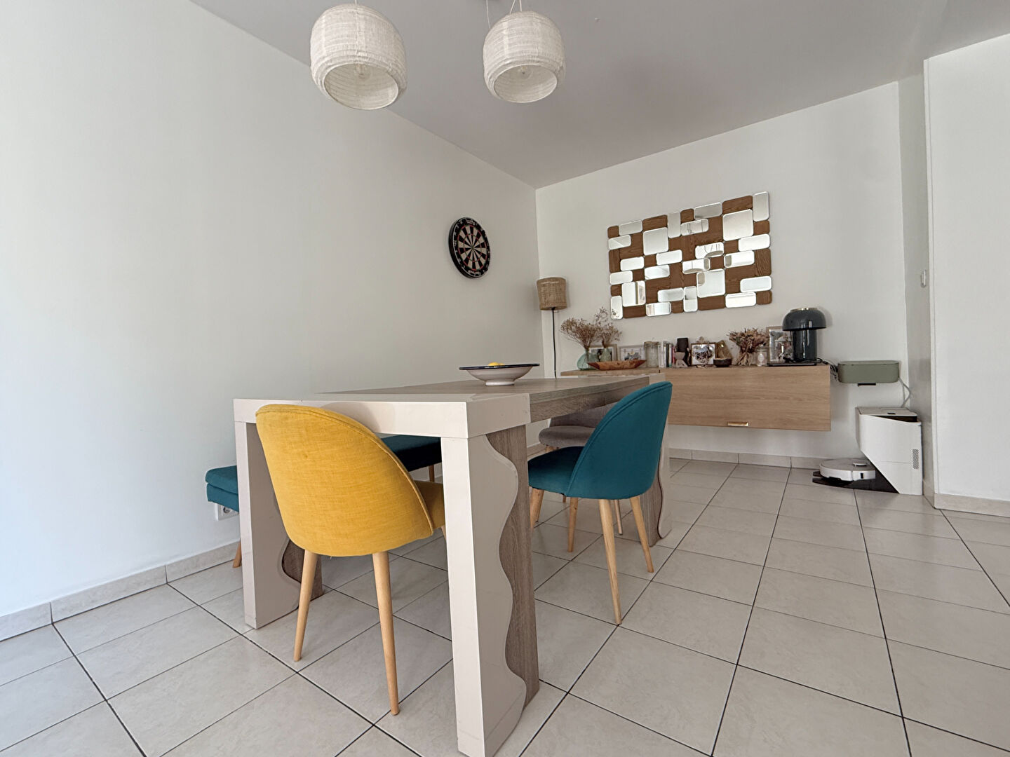 ...En rez-de-chaussée, entrée, cuisine équipée, séjour et salle à manger...