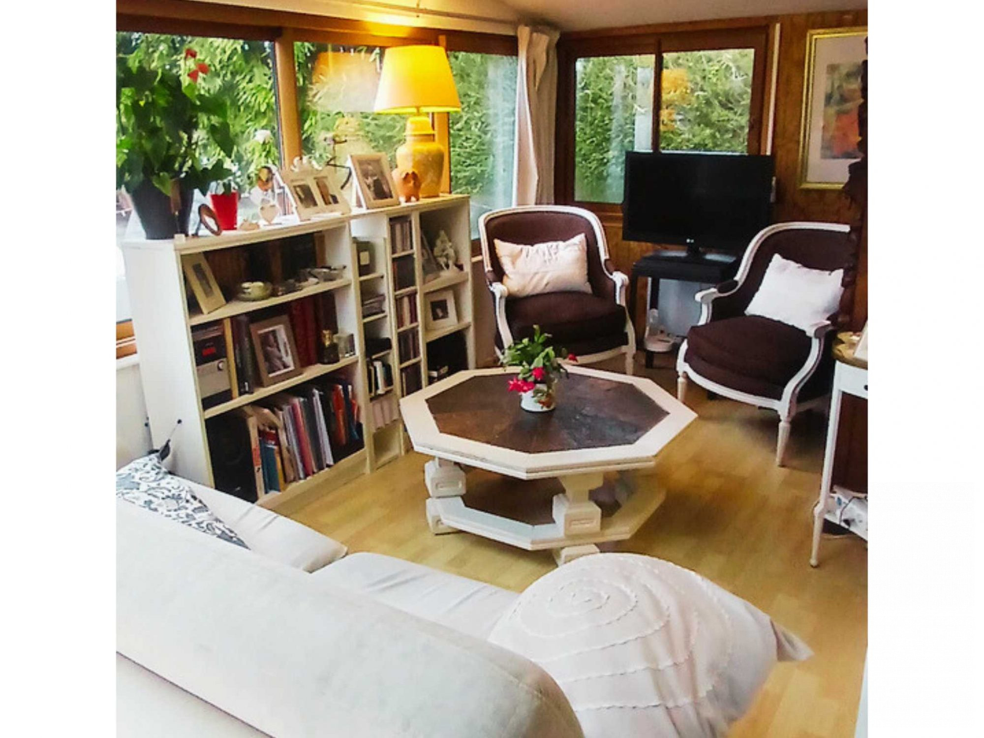 ...Au premier étage: séjour lumineux, une chambre...