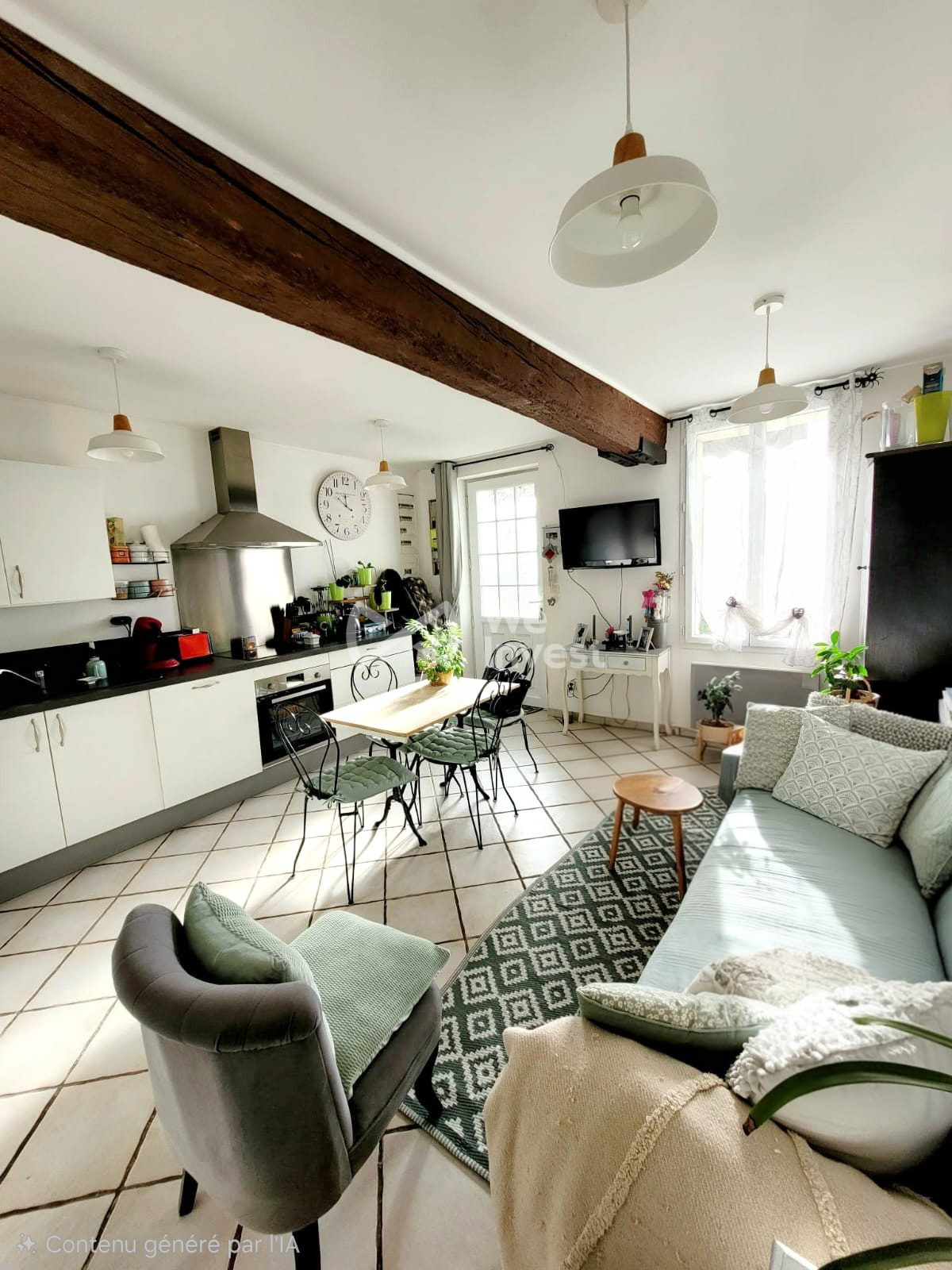 ... Pavillon individuel comprenant : grande pièce de vie de plus de 50m2 avec cheminée insert et cuisni...