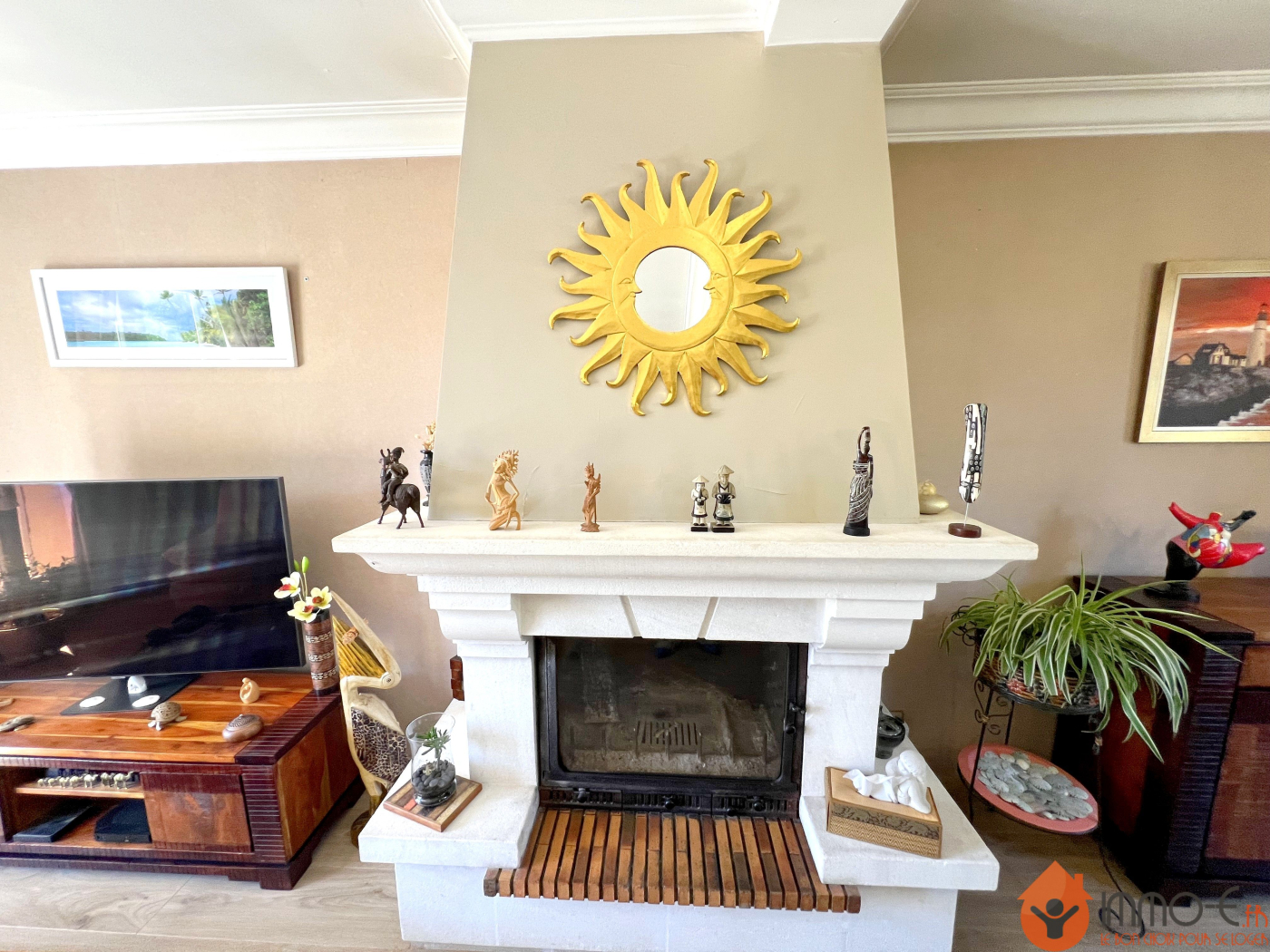 ...Il propose un spacieux séjour en double exposition, sublimé par une cheminée avec insert, ouvert...