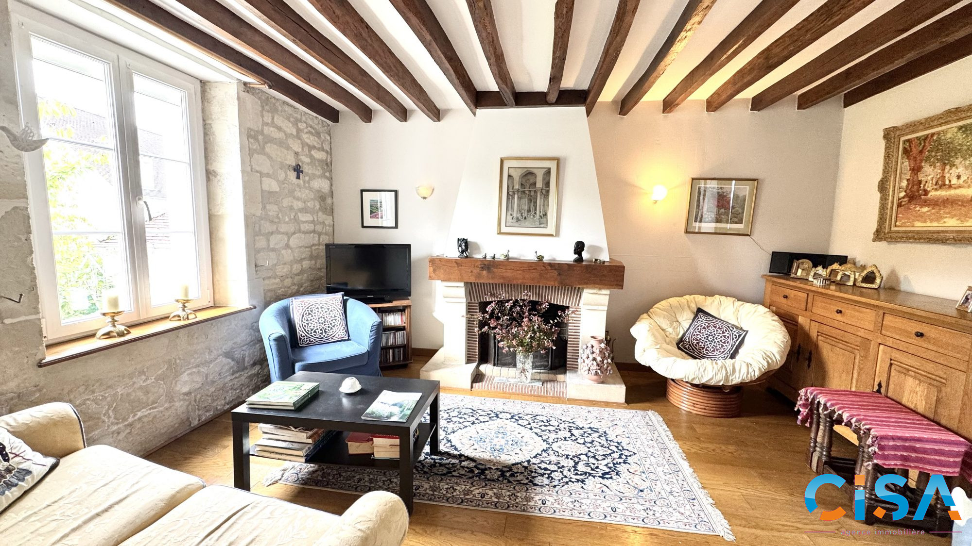 ...75m2) avec poêle à bois, une cuisine entièrement aménagée équipée donnant sur une terrasse esprit...