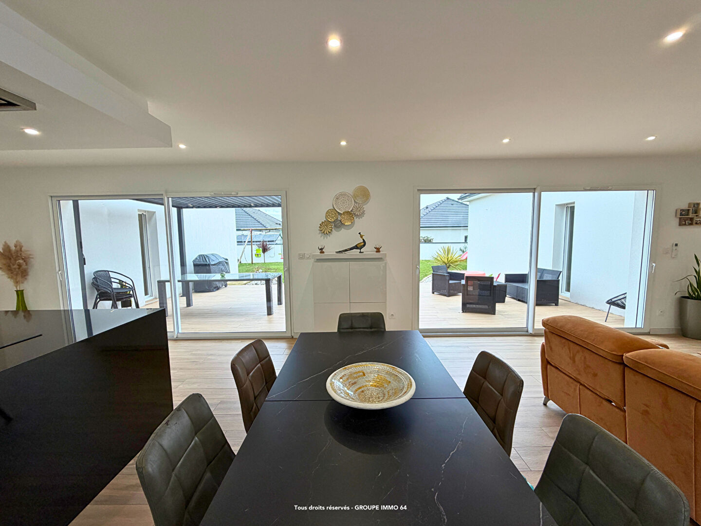 ...Une fois passée le hall d'entrée, vous êtes dans le séjour agrémenté de 3 baies vitrées avec...