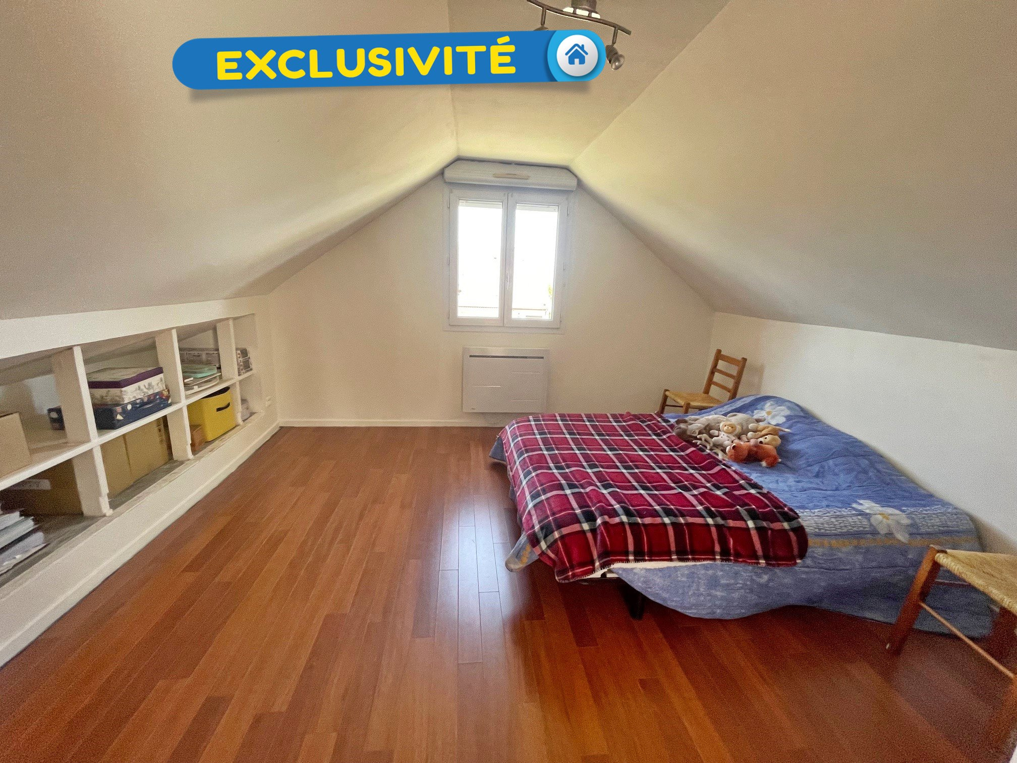 ...A l'étage : deux chambres, une salle de jeux et une salle d'eau avec wc...