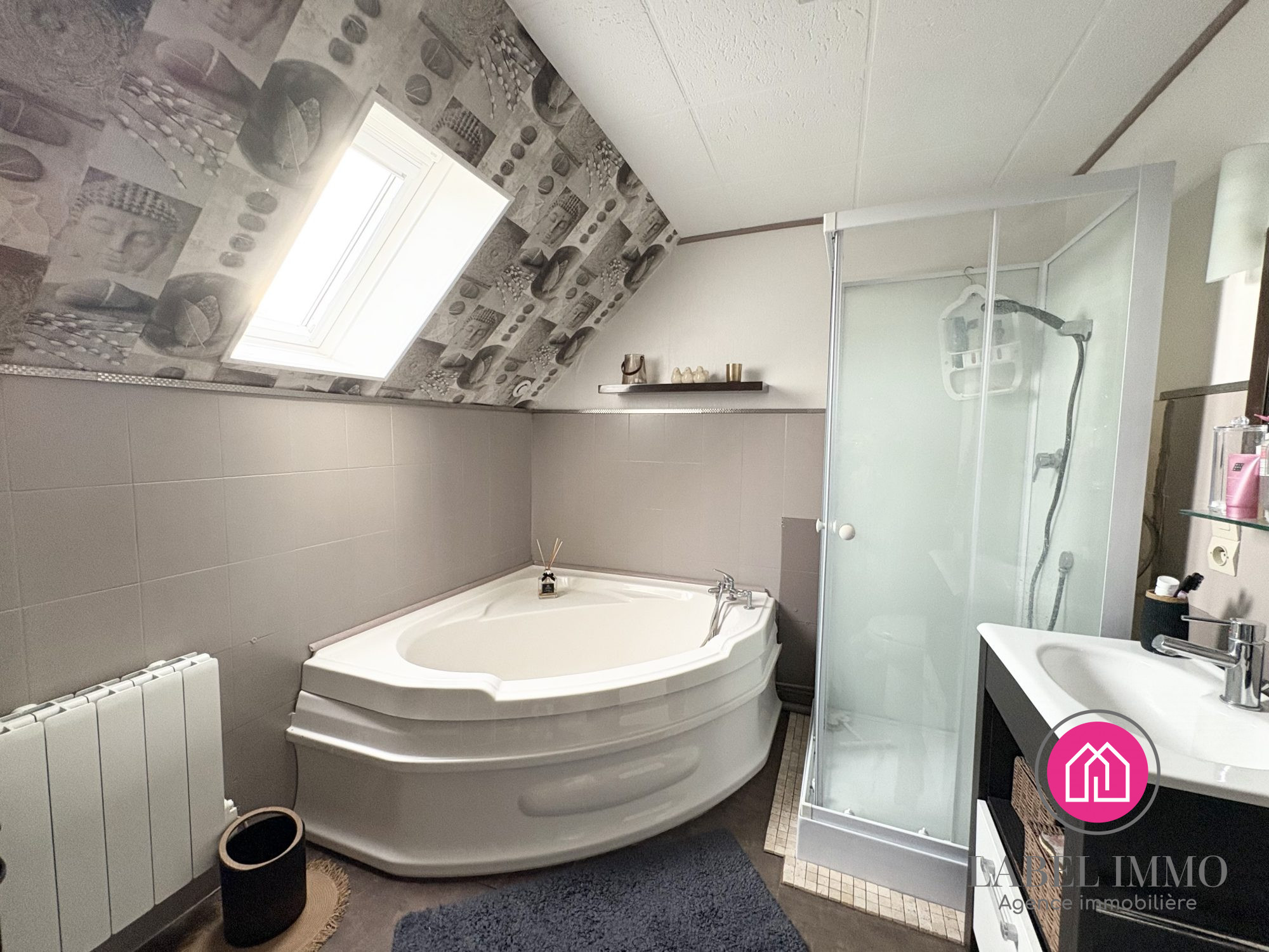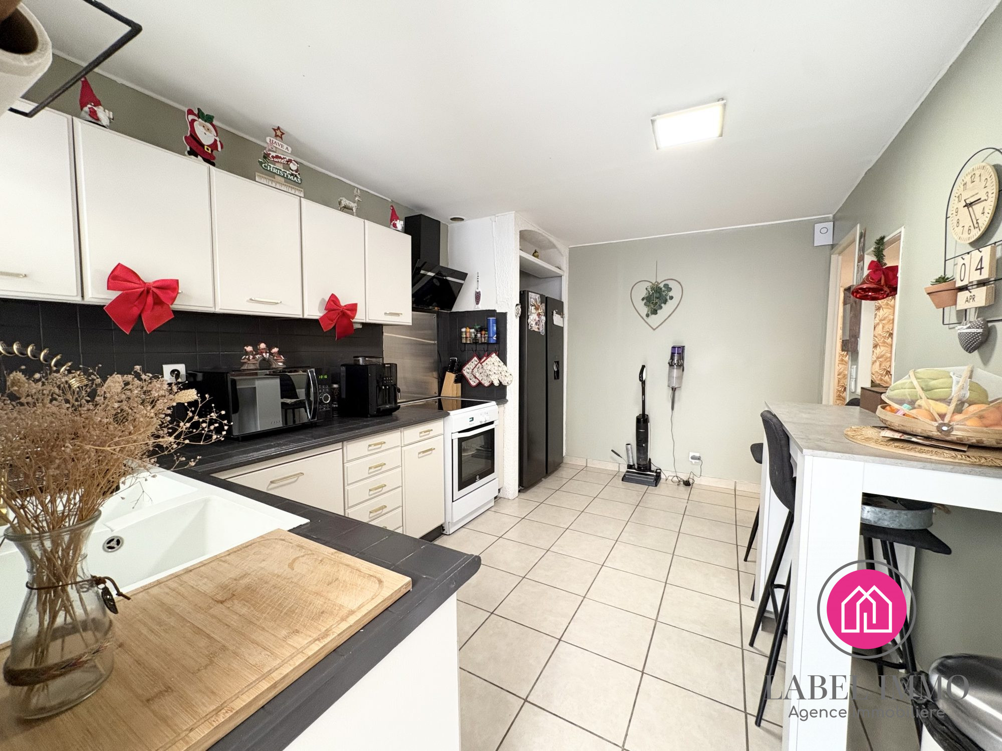 ...Le rez-de-chaussée s'ouvre sur un vaste séjour équipé d'un insert, prolongé par une cuisine...
