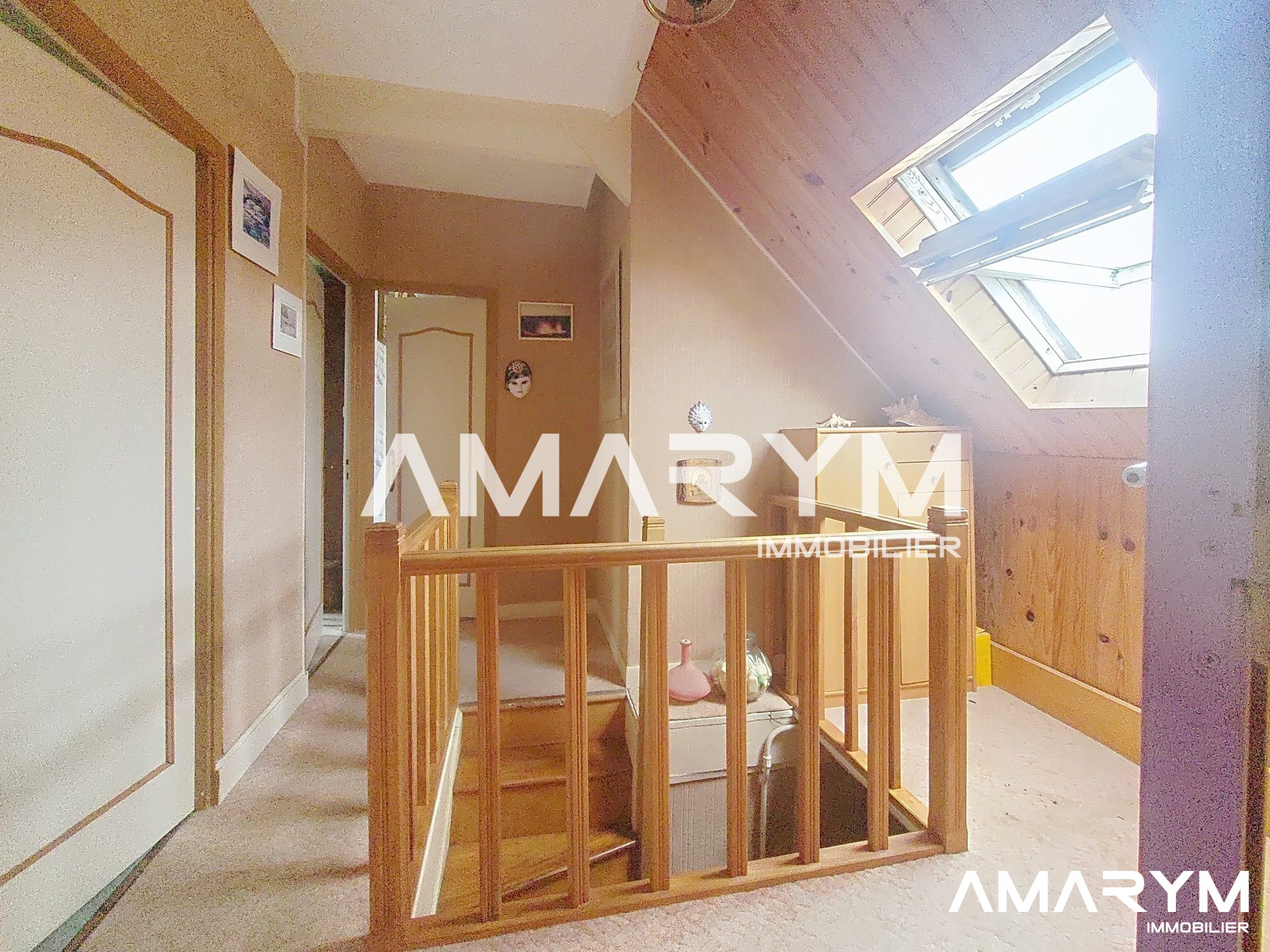 ...A l'étage, un grand palier desservant une salle d'eau avec WC et placard de rangement, ainsi que...