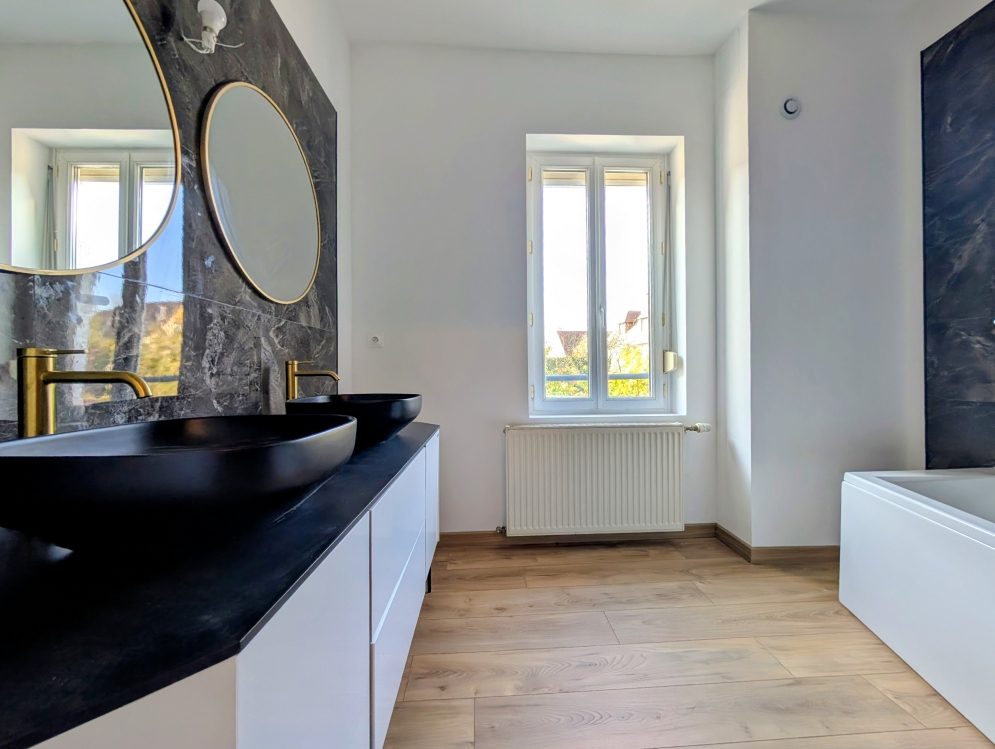 ...Au 1er étage, deux belles chambres dont une avec salle d'eau privative, une salle de bain et WC...