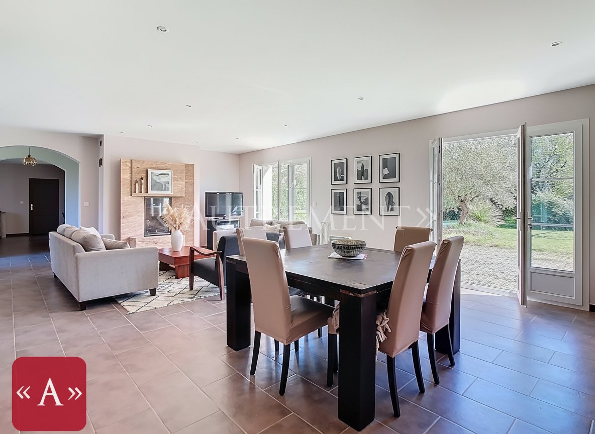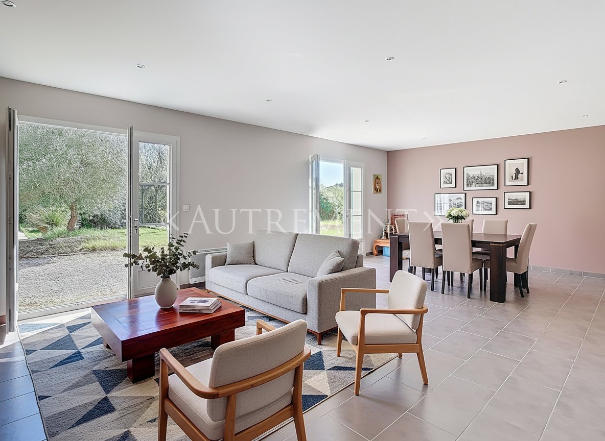 ...Les pièces de vie donnent directement sur le jardin, créant une belle continuité entre la maison...