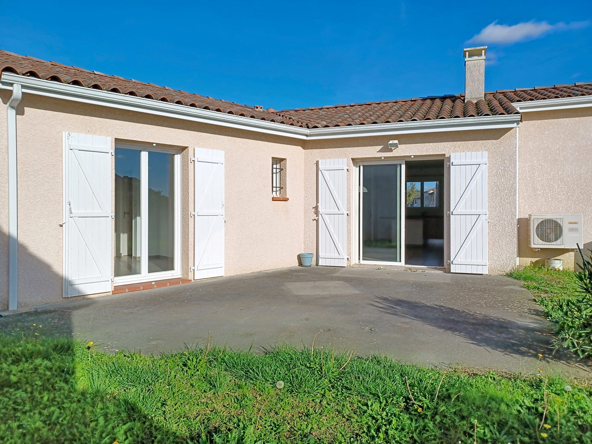 ... Maison de plain-pied de type 4, avec garage et jardin.