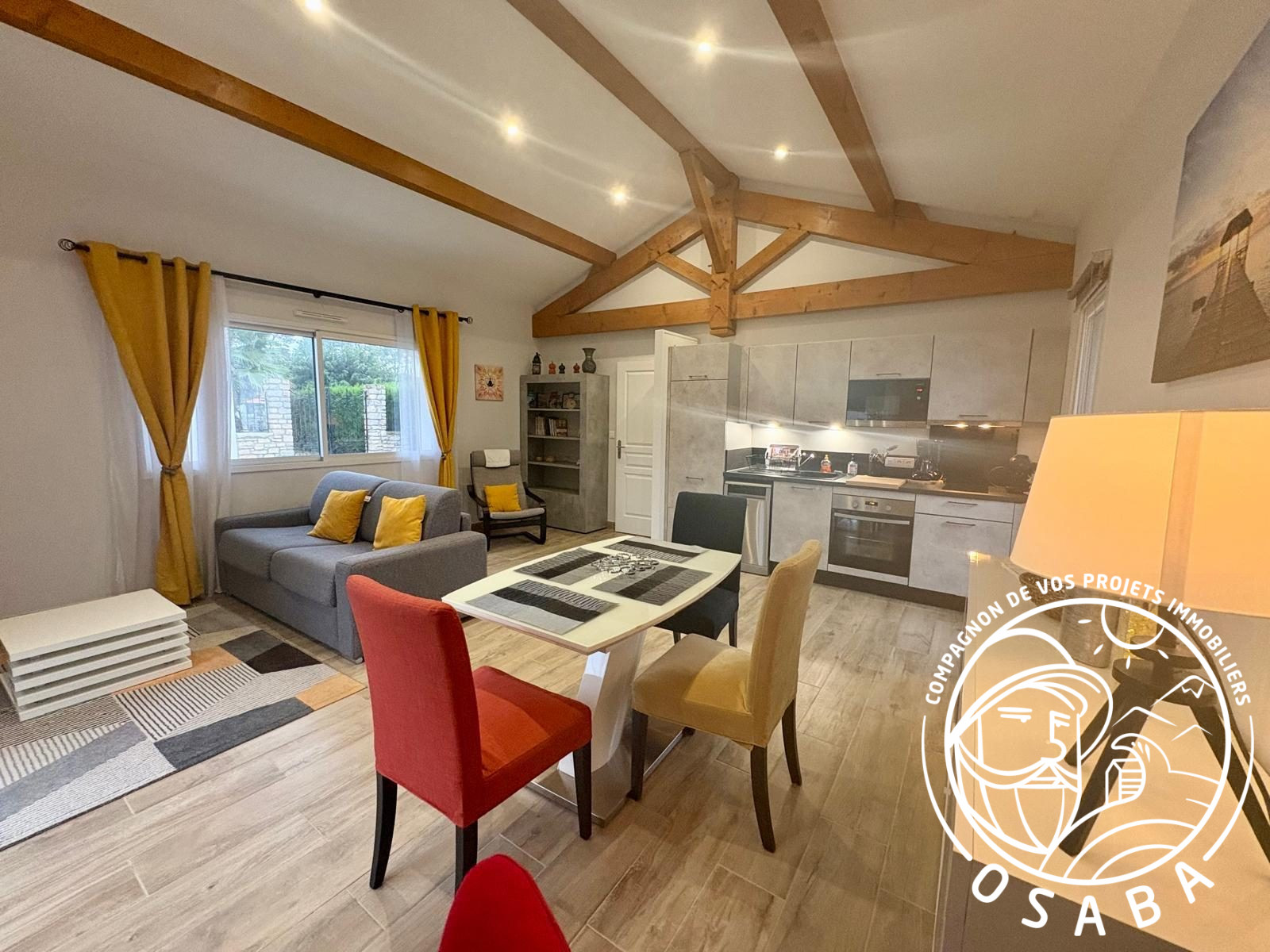 ...Le séjour cathédrale de 36 m², lumineux et chaleureux, est équipé d'un insert et donne sur une...