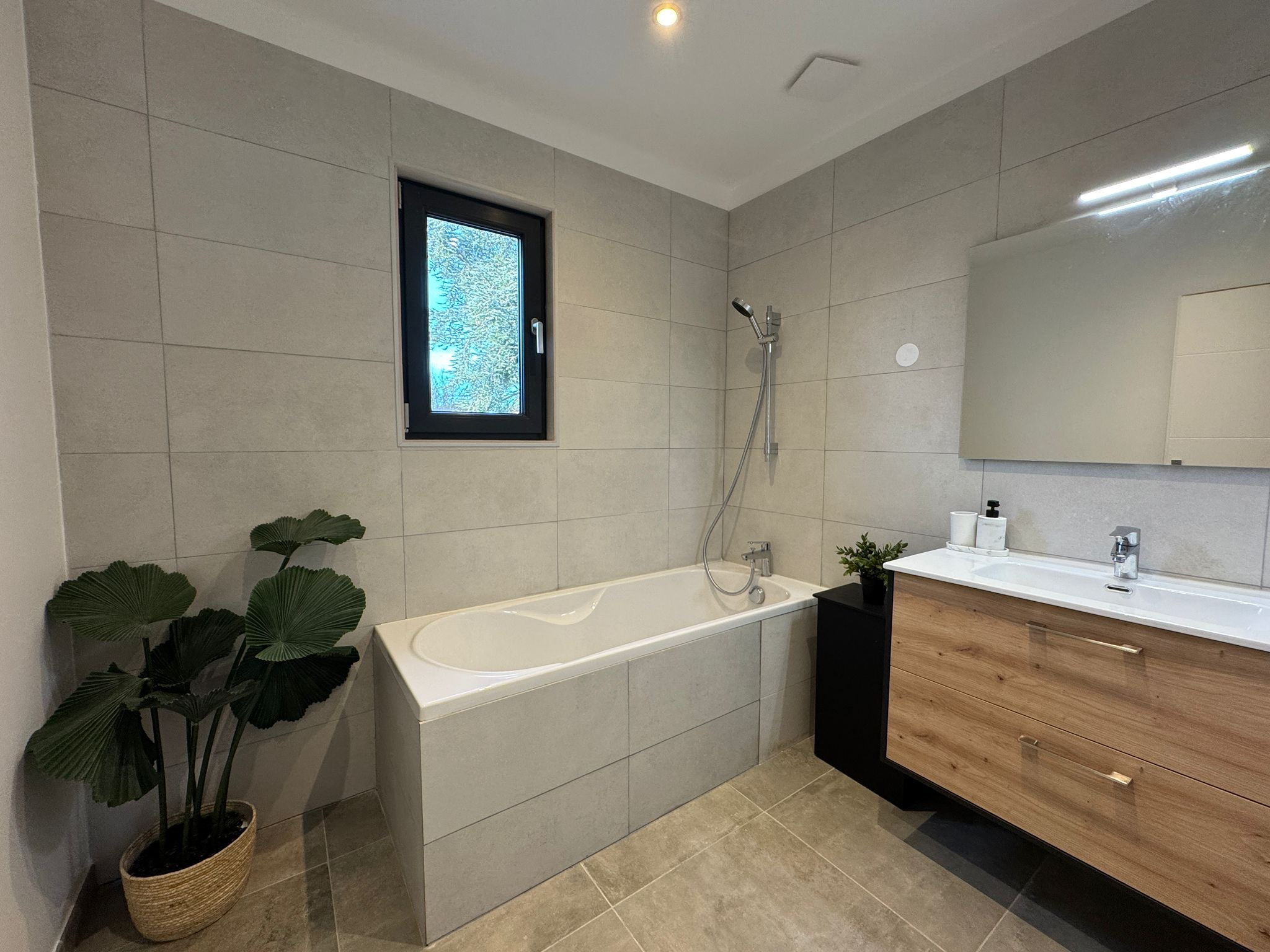 ...Côté nord, un jardin clos, arboré et piscinable...