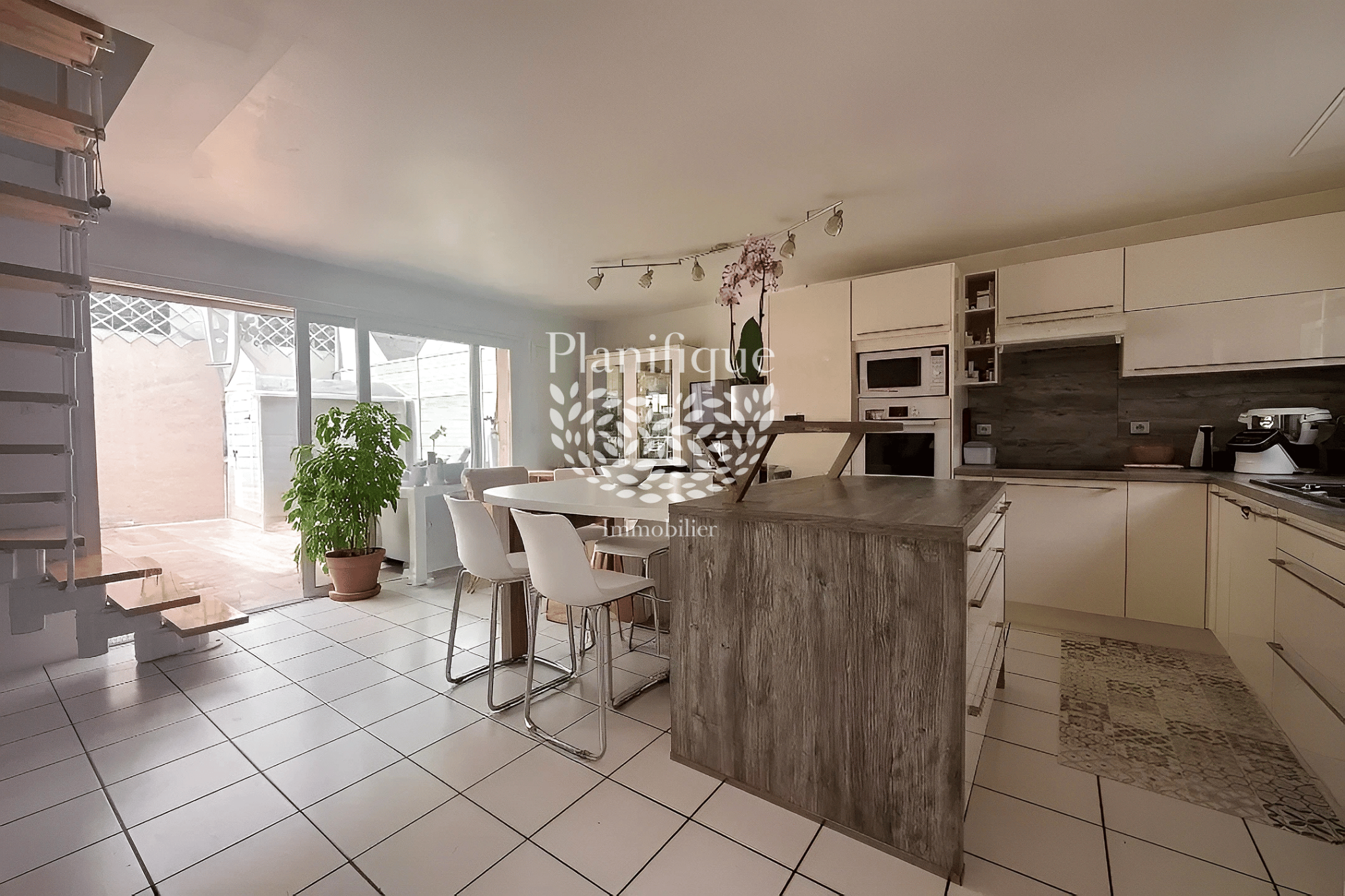 ... : un salon lumineux et convivial, une cuisine ouverte donnant sur l'extérieur, un espace buanderie,...