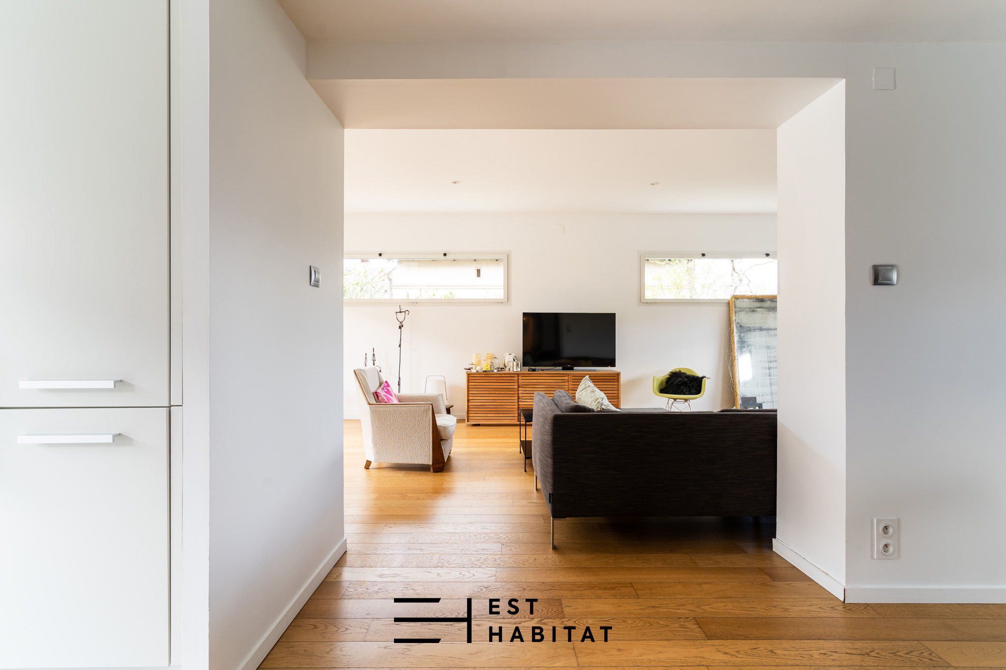 ...La pièce de vie, particulièrement généreuse (plus de 90 m2), profite d'une triple exposition et...
