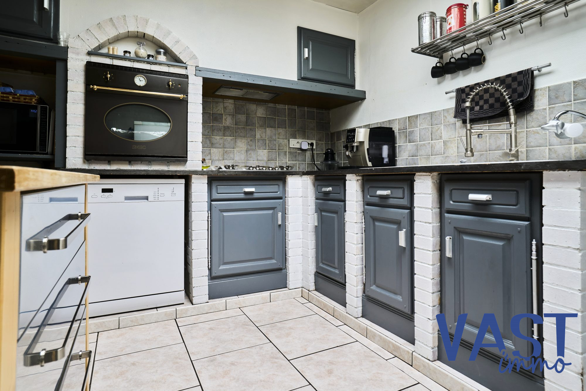 ...Dès l'entrée, vous accédez à un grand garage pratique, une salle de bains, puis à une cuisine...