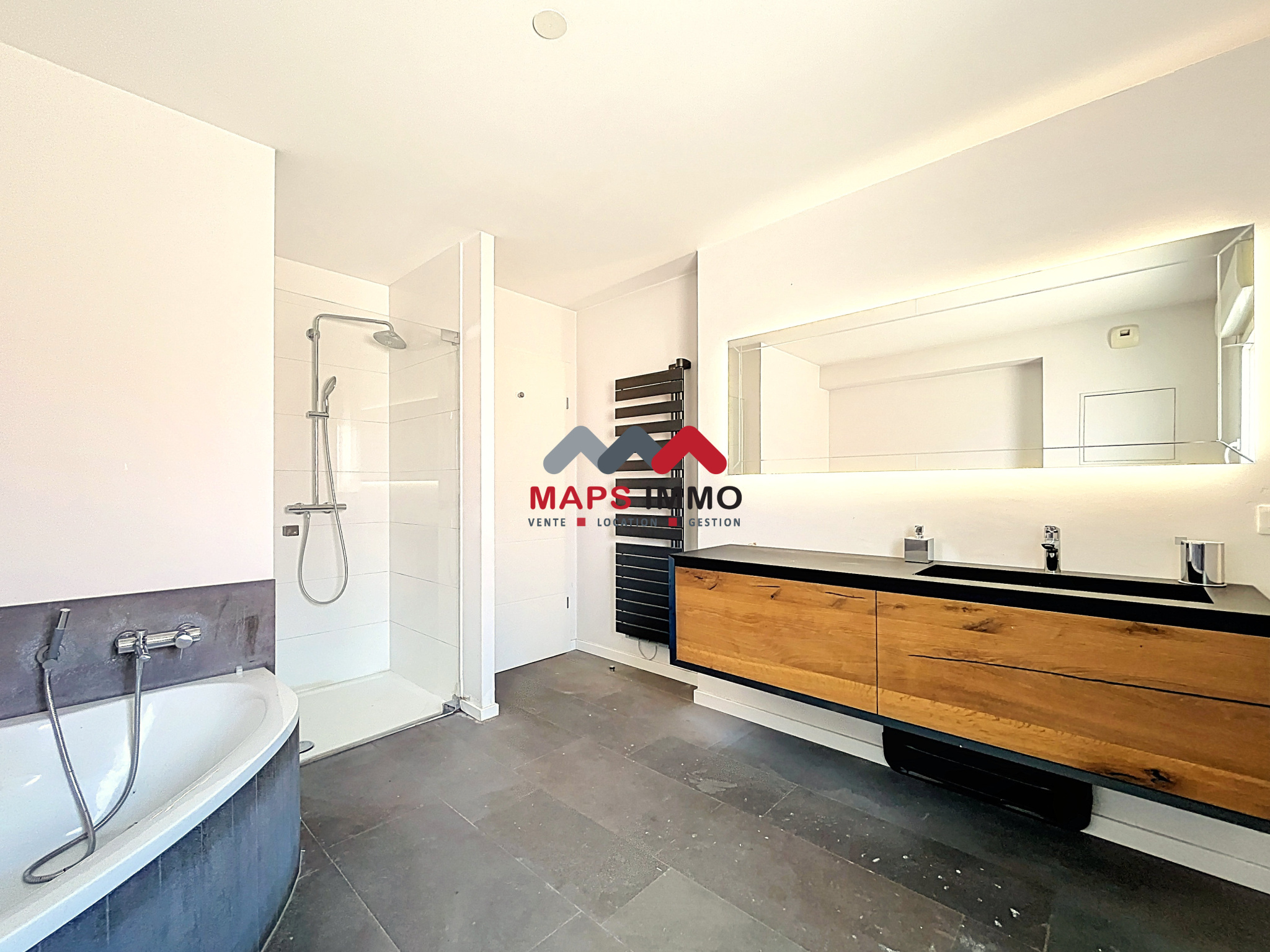 ...Dès l'entrée, vous serez accueilli par un vaste hall desservant : un salon / séjour lumineux,...