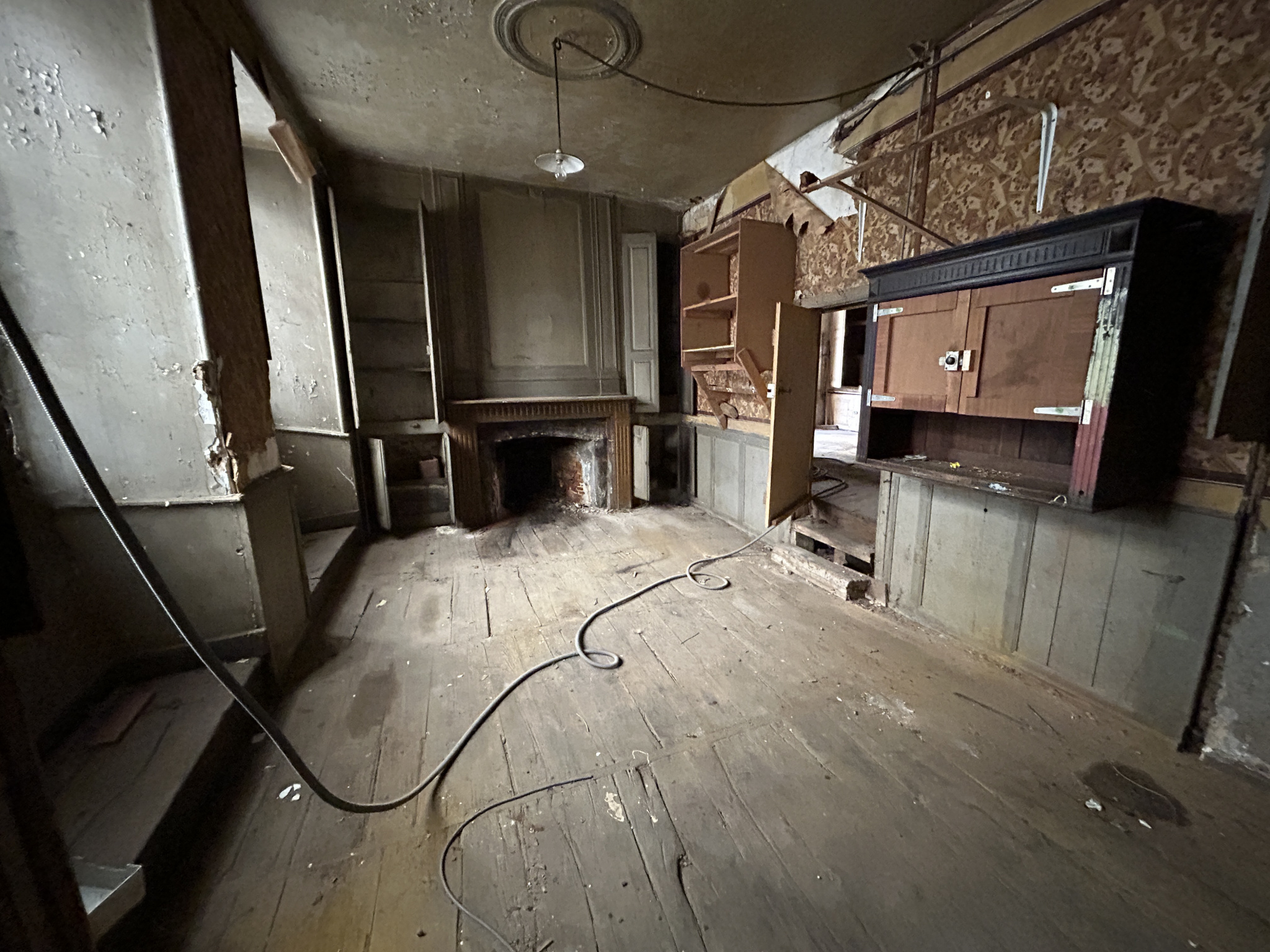 ... cette maison à rénover comprend une cuisine, un salon, une chambre avec balcon, une salle d'eau et ...