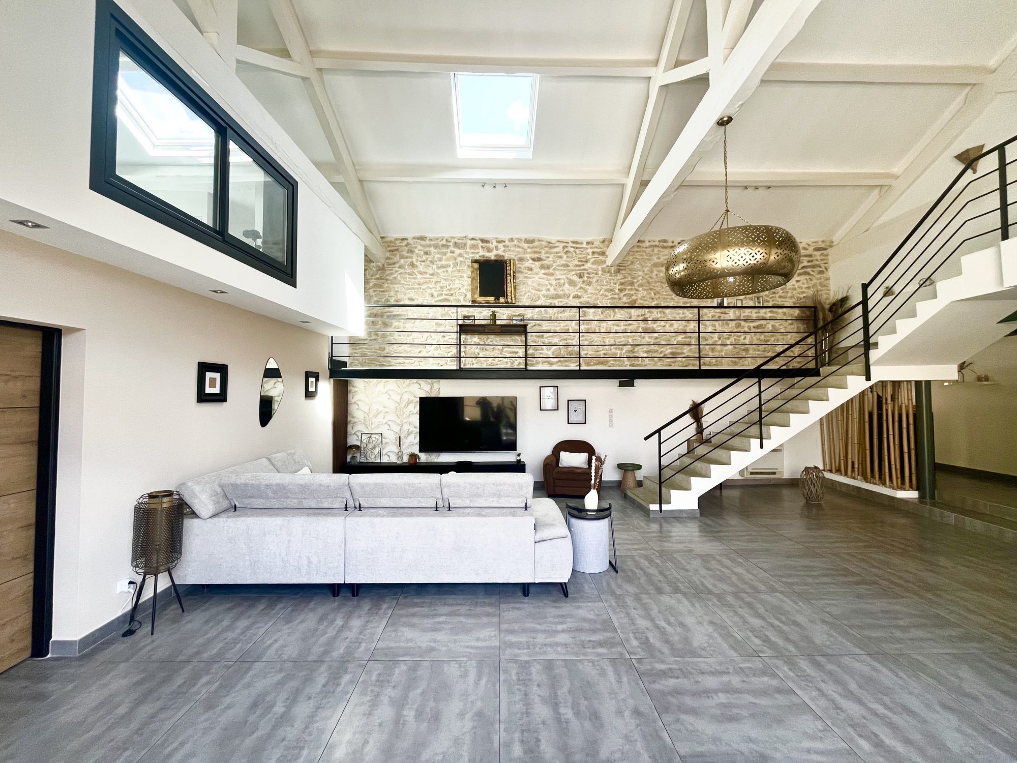 ...- AU REZ-DE-CHAUSSÉE : Une immense pièce de vie de 55 m² baignée de lumière, avec cuisine ouverte...