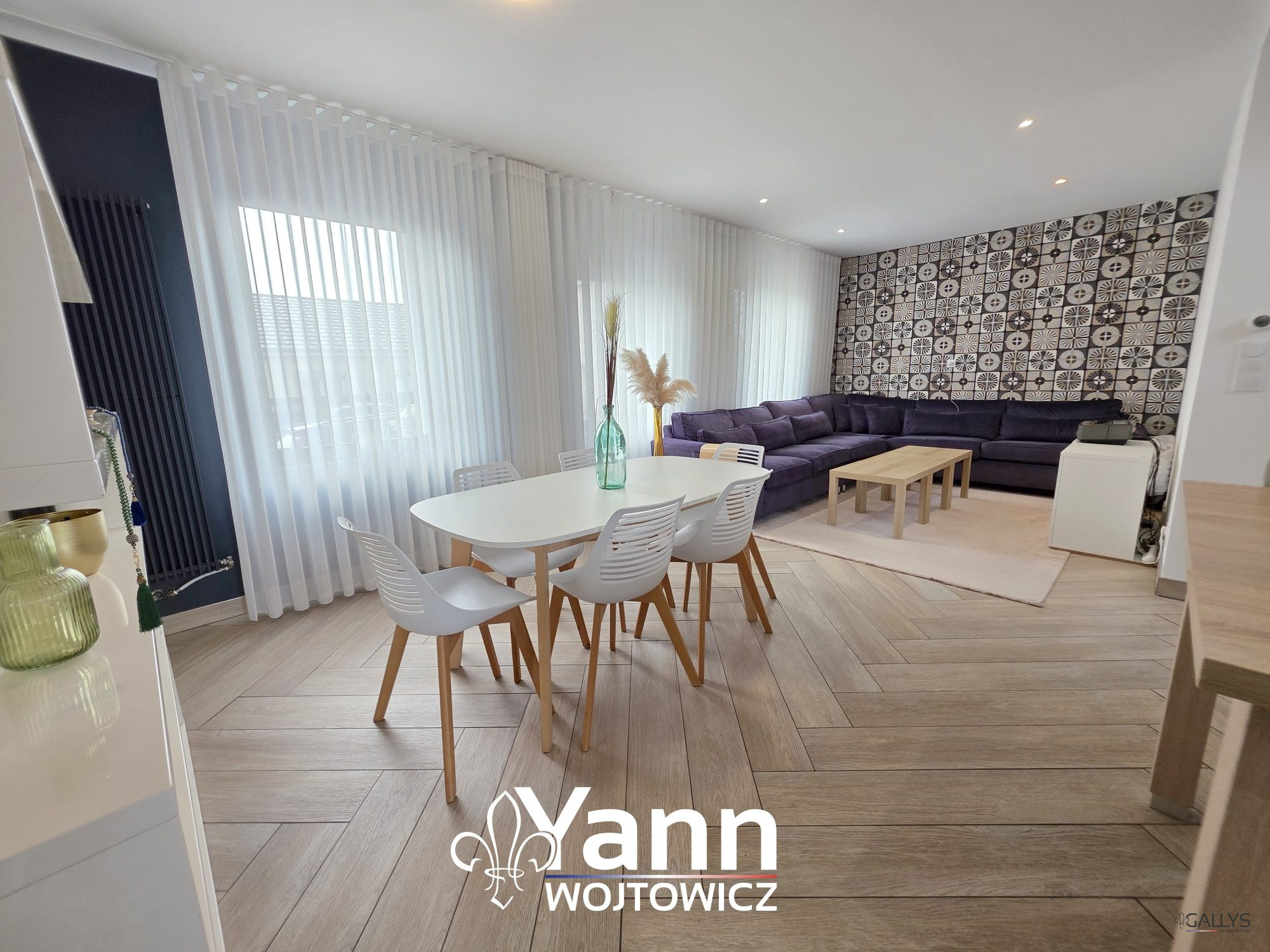 ...Au rez-de-chaussée :Une vaste pièce de vie de 42 m² regroupant salon, séjour et cuisine,Une...
