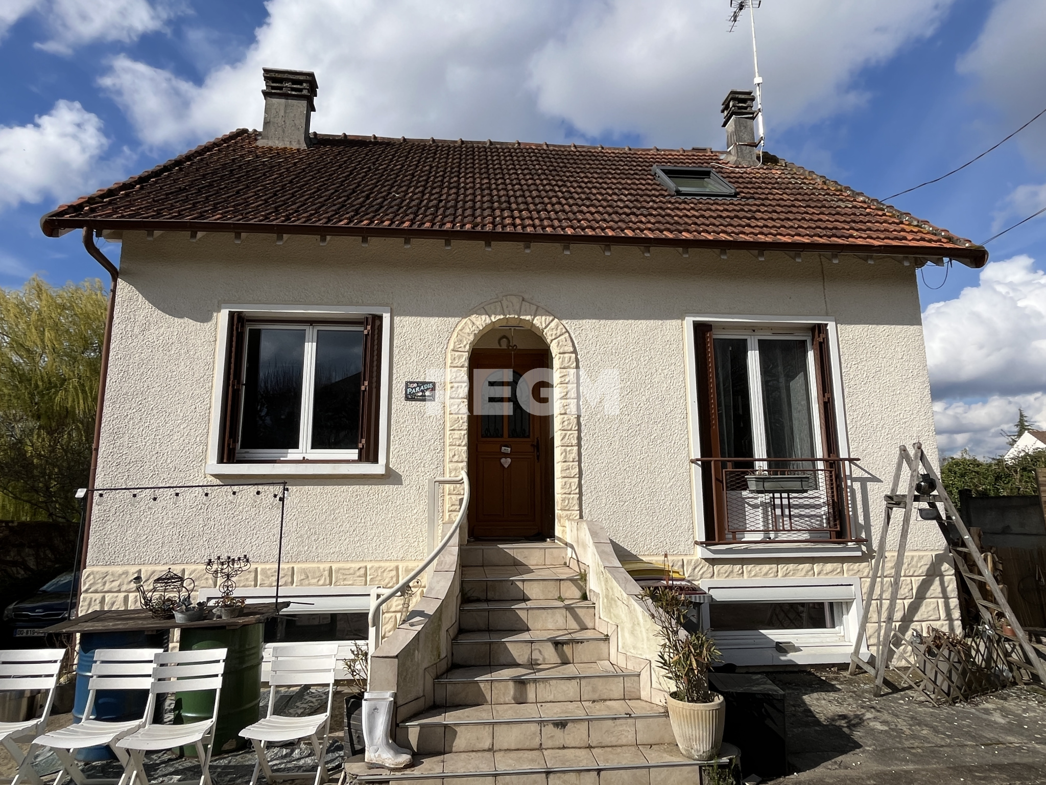 ...Au 1 er étage, on y trouve un couloir desservant une salle de bains avec douche et toilettes et 2...