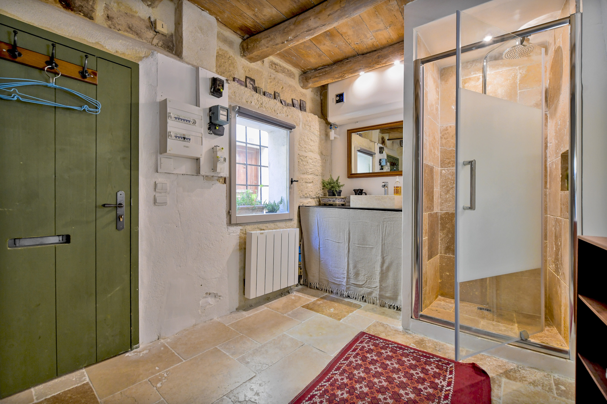...Ouvrant directement sur la cour, 4 belles caves faisant office de rangement, chaufferie et...