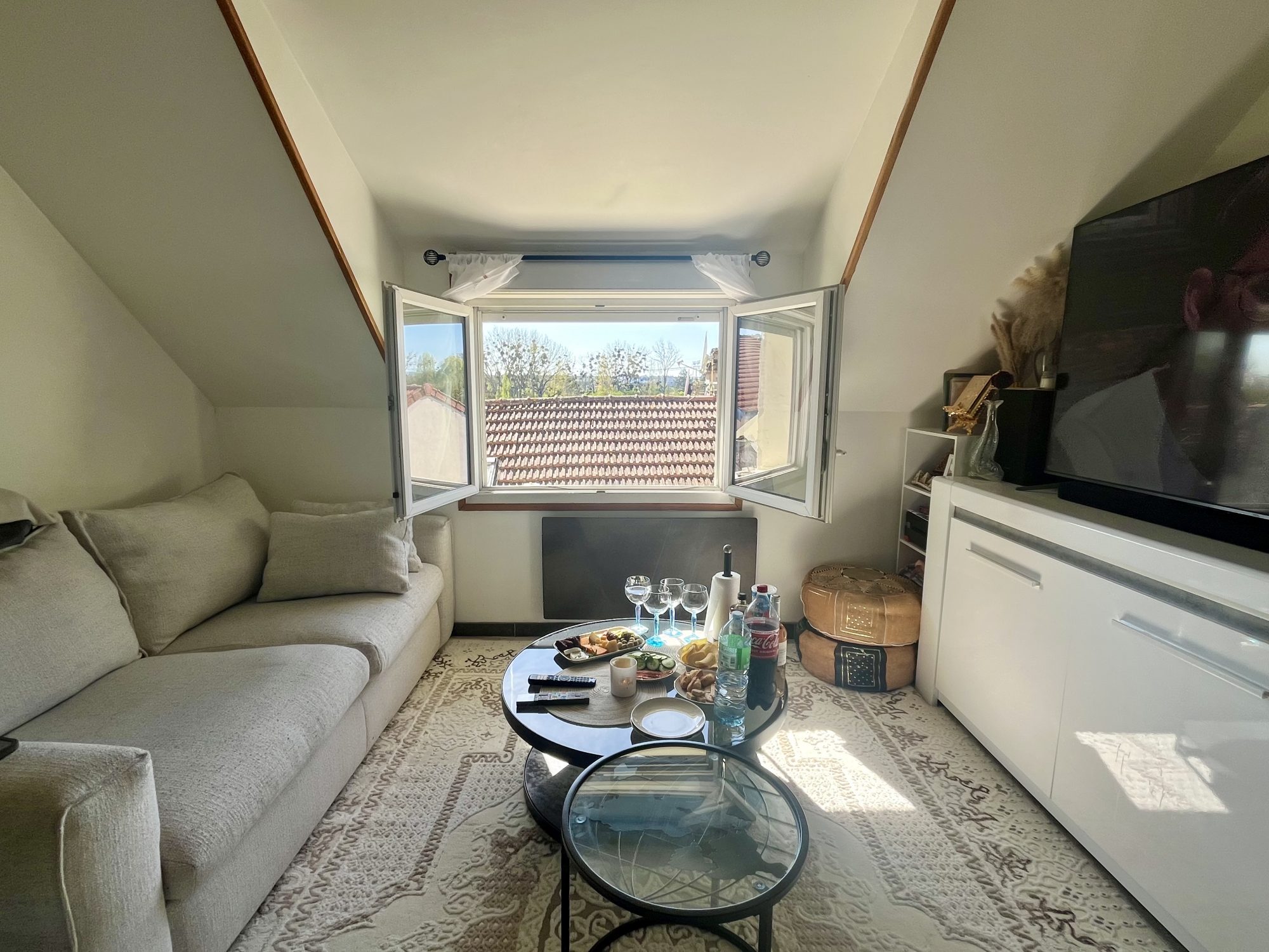 ... cette maison atypique, très lumineuse est située à proximité immédiate des commerces, du marché, et...