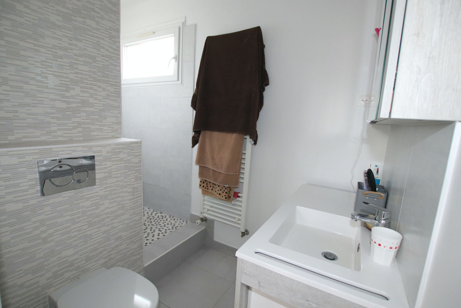 ...En rez-de-jardin, vous accédez de plain pied à un logement type 2-3 pièces avec cuisine...