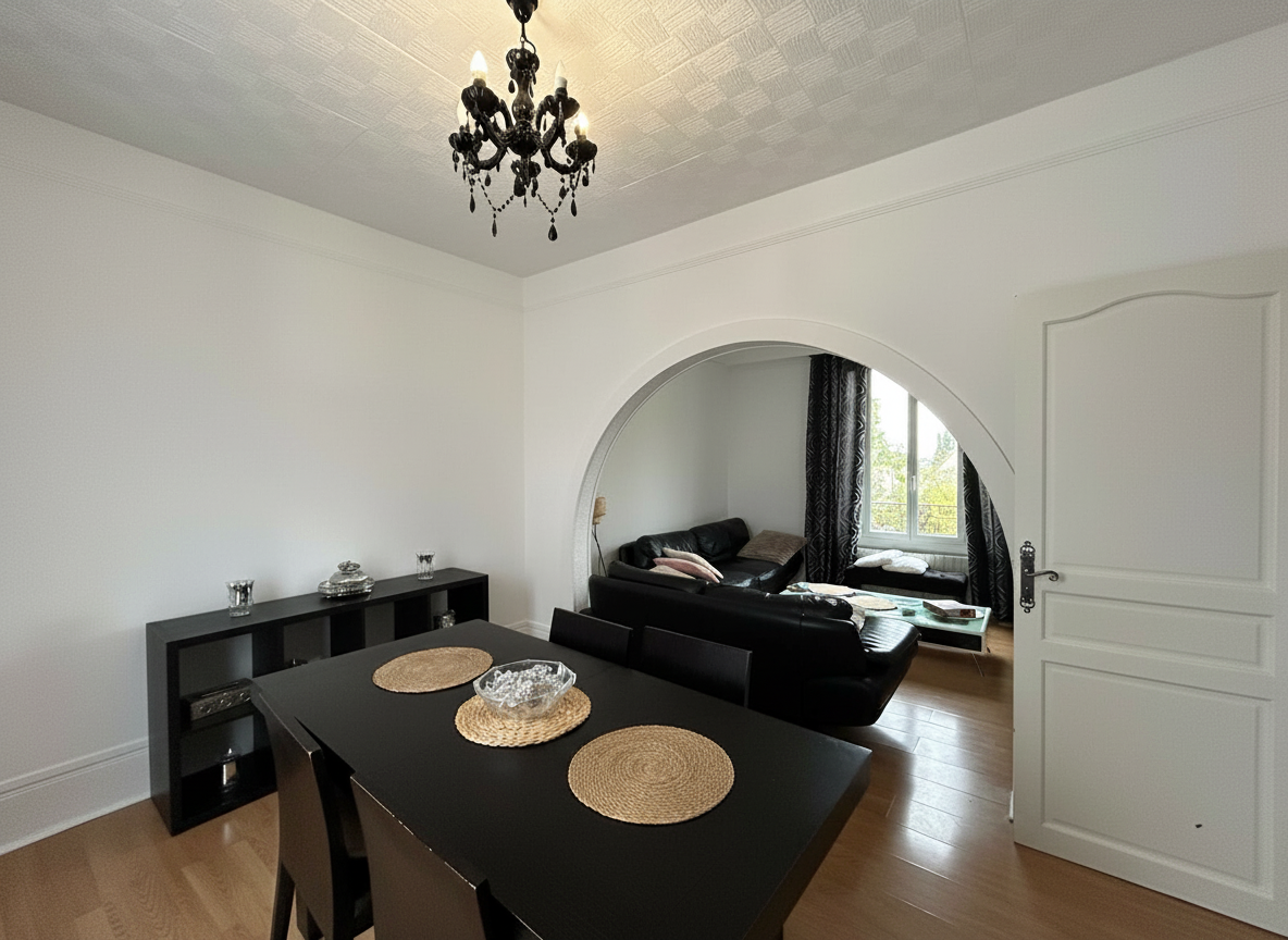 ... séjour double lumineux et traversant de 24.6m2, une cuisine équipée séparée, et un wc.