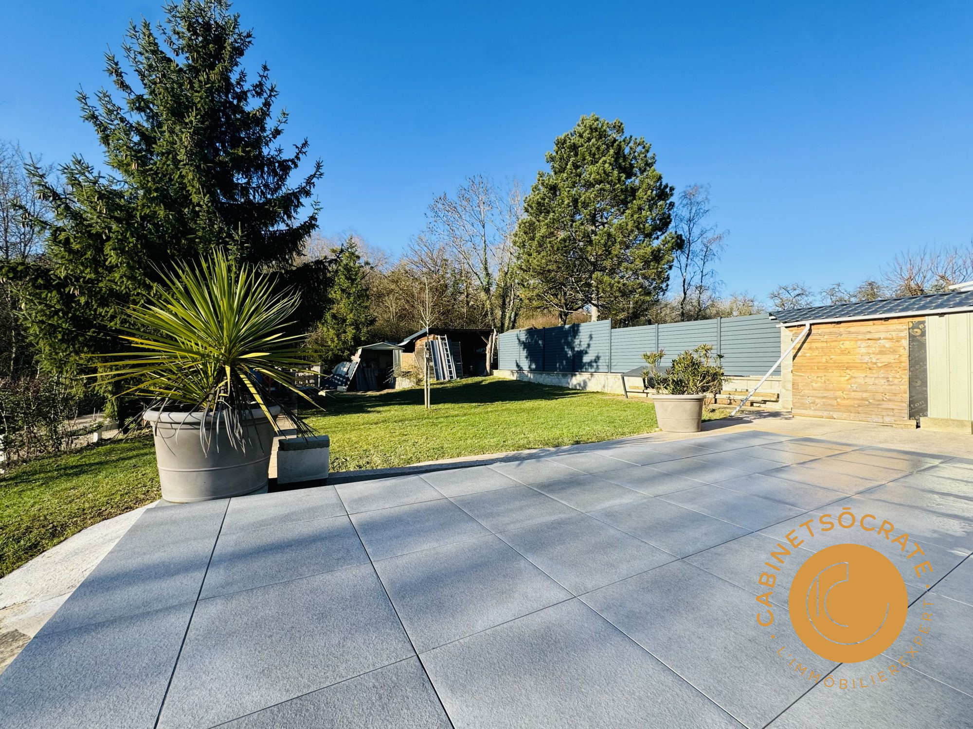 ...Le tout s'ouvre sur la terrasse et le jardin, sans aucun regard extérieur, pour une continuité...