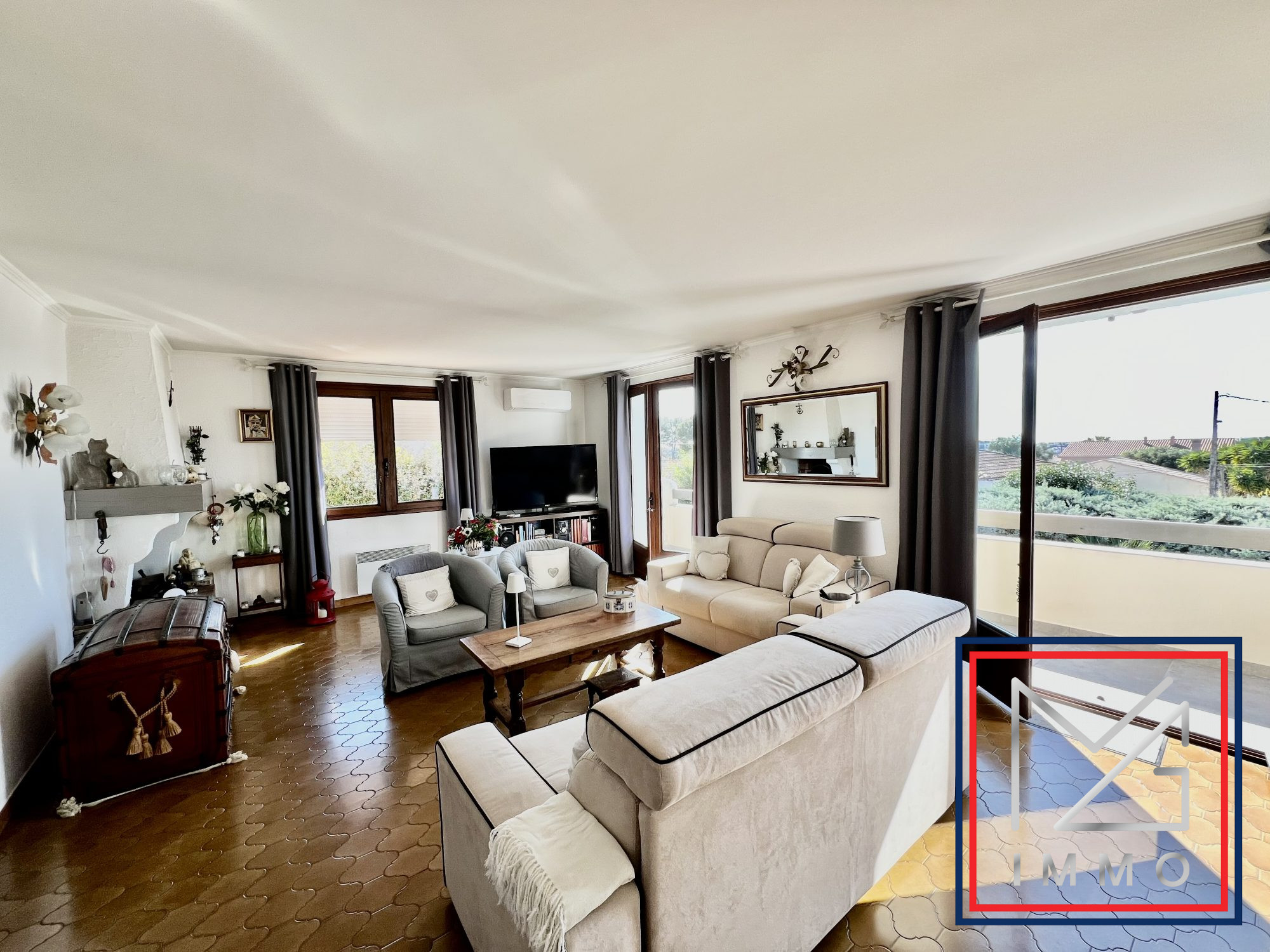 ...Une grande terrasse plein sud avec vue dégagée et aperçu mer au calme,Egalement avec un autre...