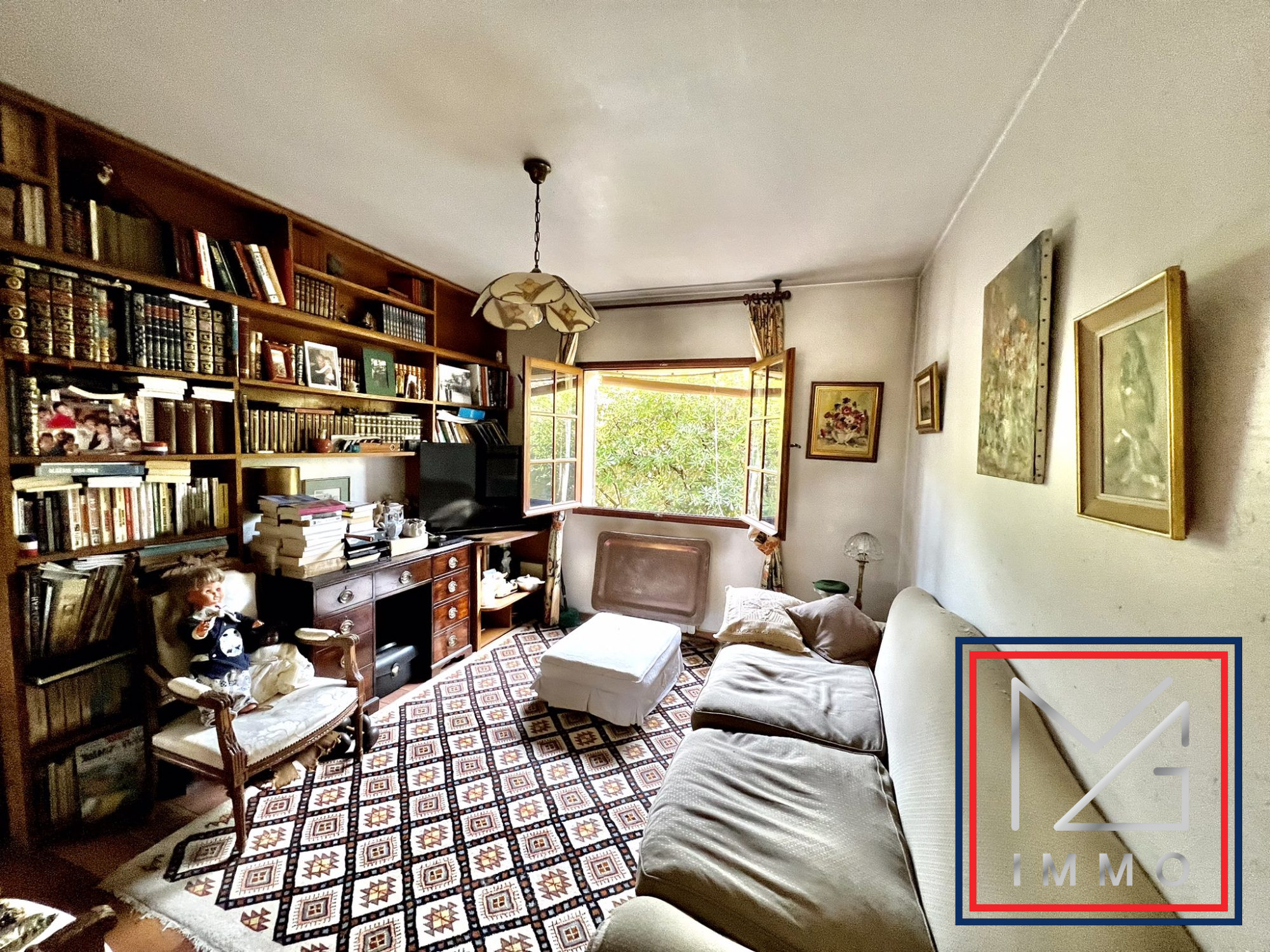 ...Un vaste salon avec cheminée, une bibliothèque, une grande véranda plein Sud, une grande cuisine...