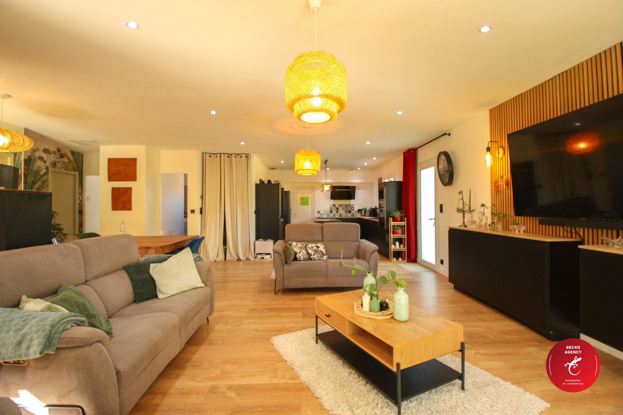 ...Dès l'entrée vous serez séduit par une vaste pièce à vivre lumineuse de plus de 60m² comprenant...