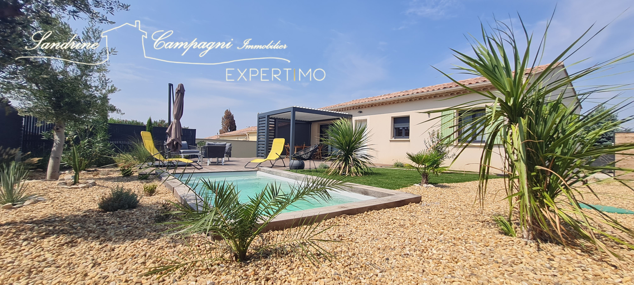 ...Exposée Sud, cette habitation chaleureuse et conviviale bénéficie d'une plage/terrasse avec vue...