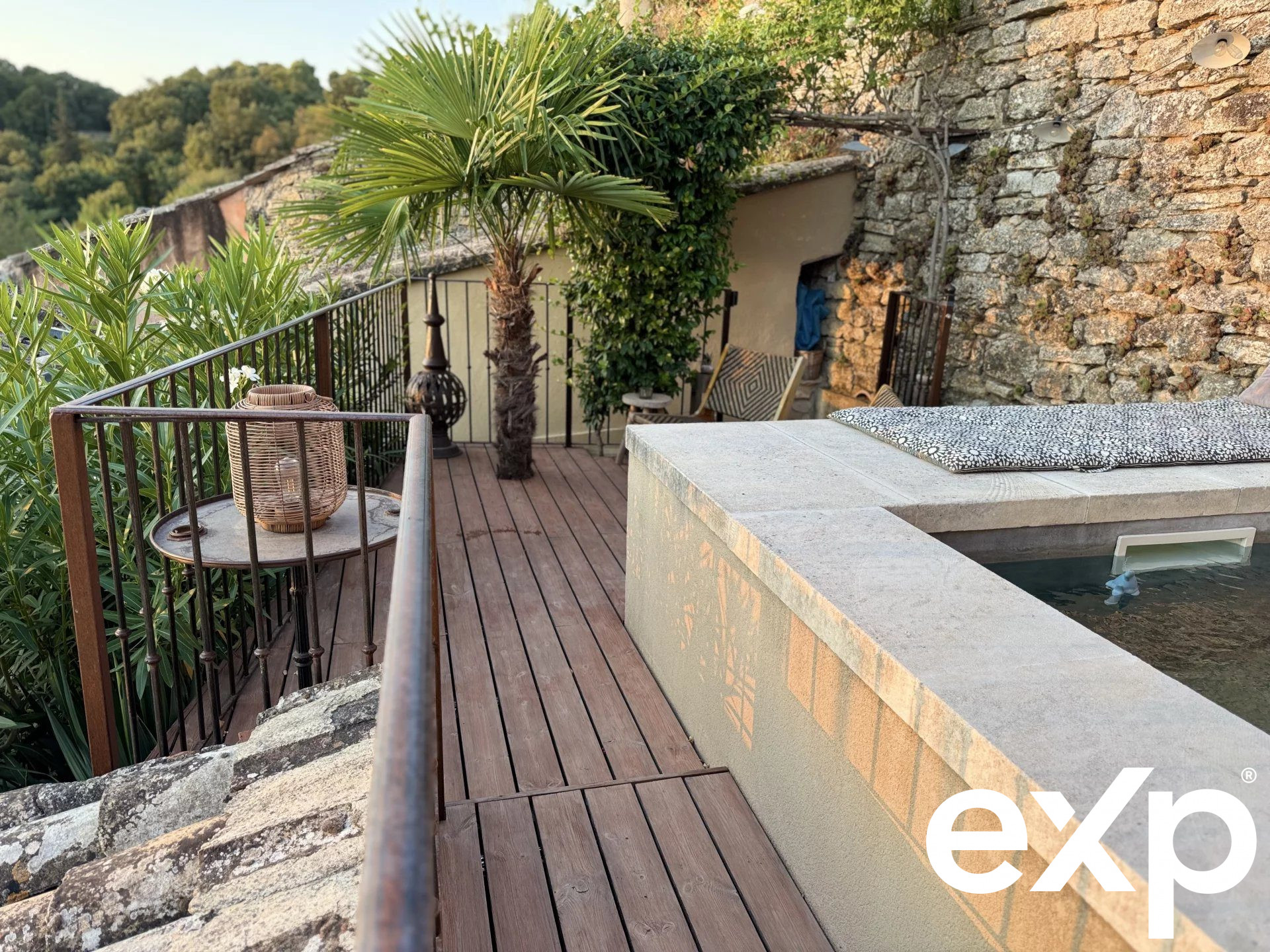 ...Le jardin, entièrement clos et soigneusement aménagé, invite à la détente avec sa piscine bordée...