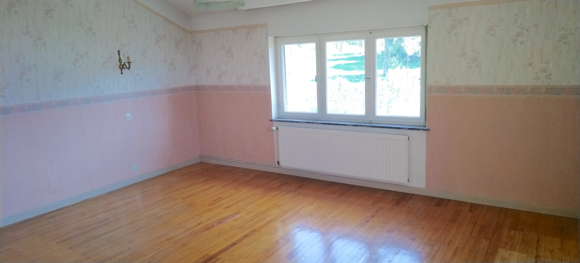 ...A l'étage : 3 grandes chambres avec parquet en chêne, salle de bain avec wc...