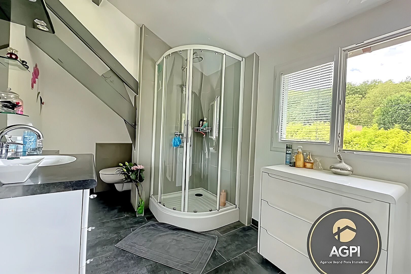 ...Nichée dans un environnement calme, elle est érigée sur une belle parcelle de 932 m2...