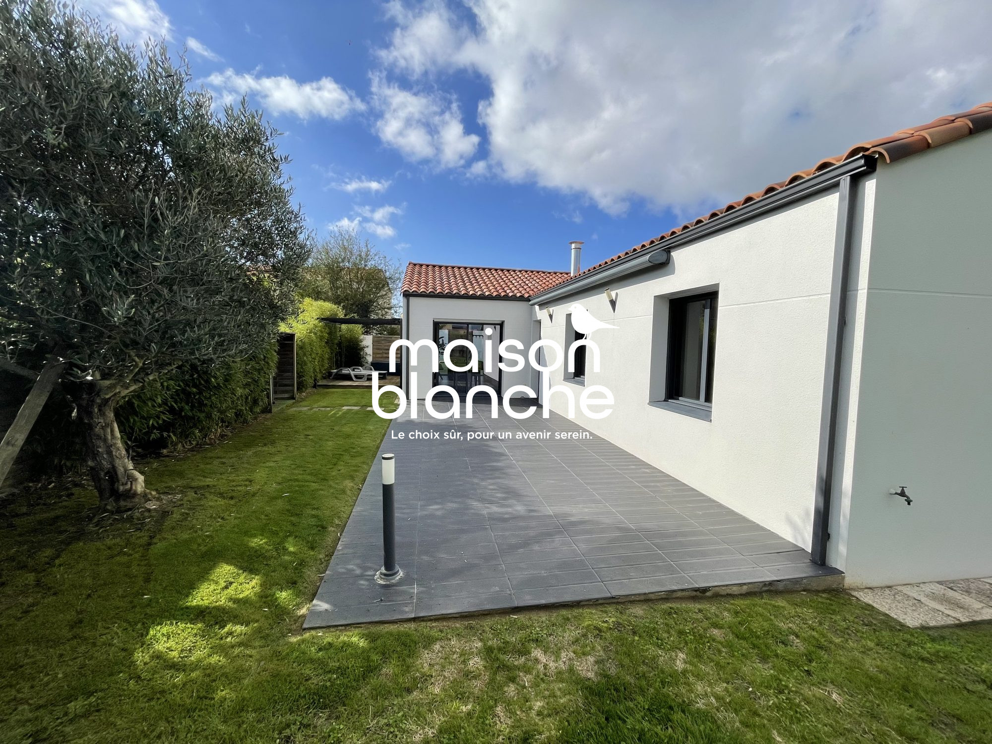 ...Située au calme d'une impasse, cette villa contemporaine de plain-pied, édifiée en 2023, déploie...