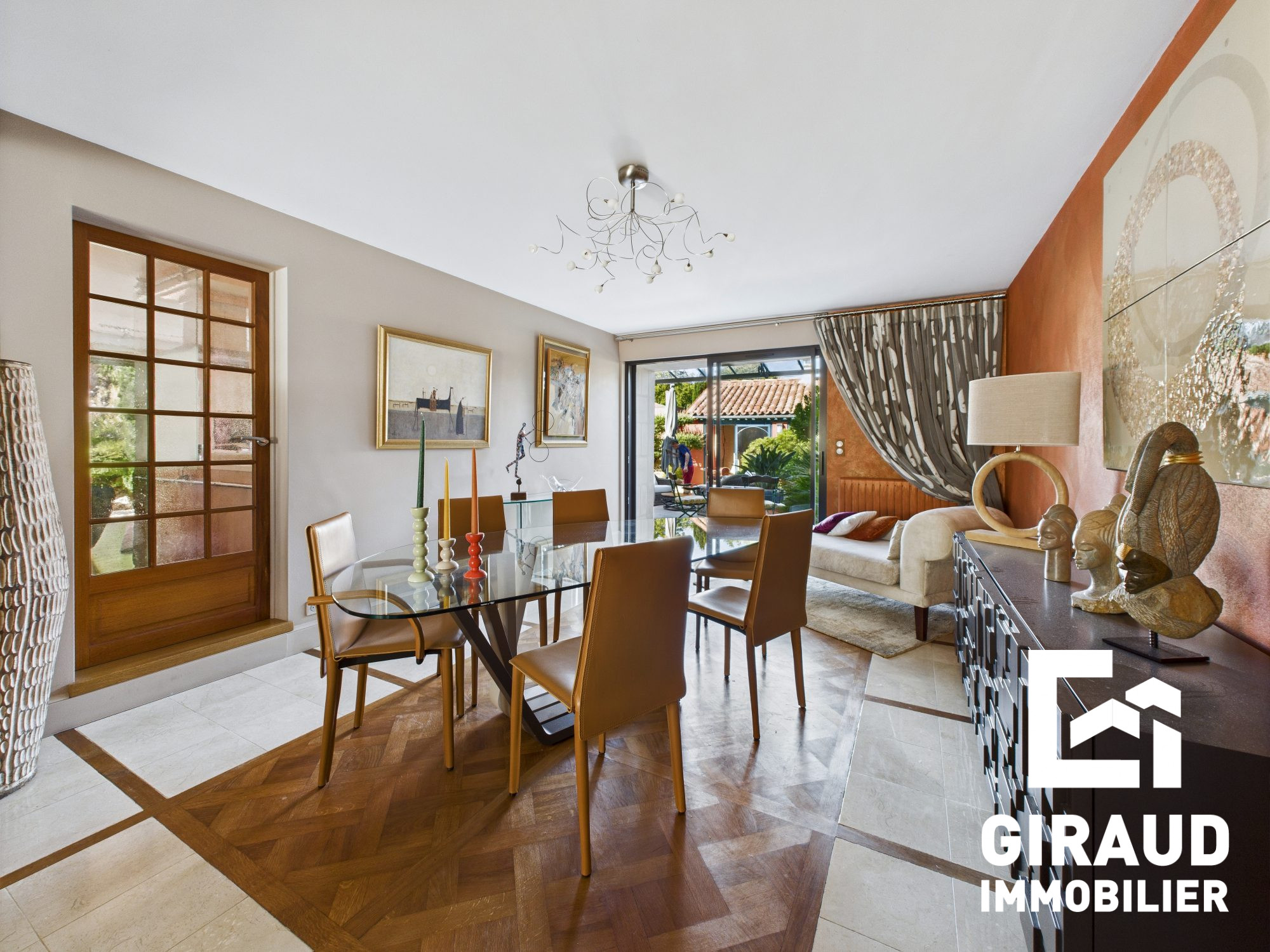 ...L'entrée lumineuse ouvre sur un vaste séjour sublimé par un parquet en chevrons et un plafond...